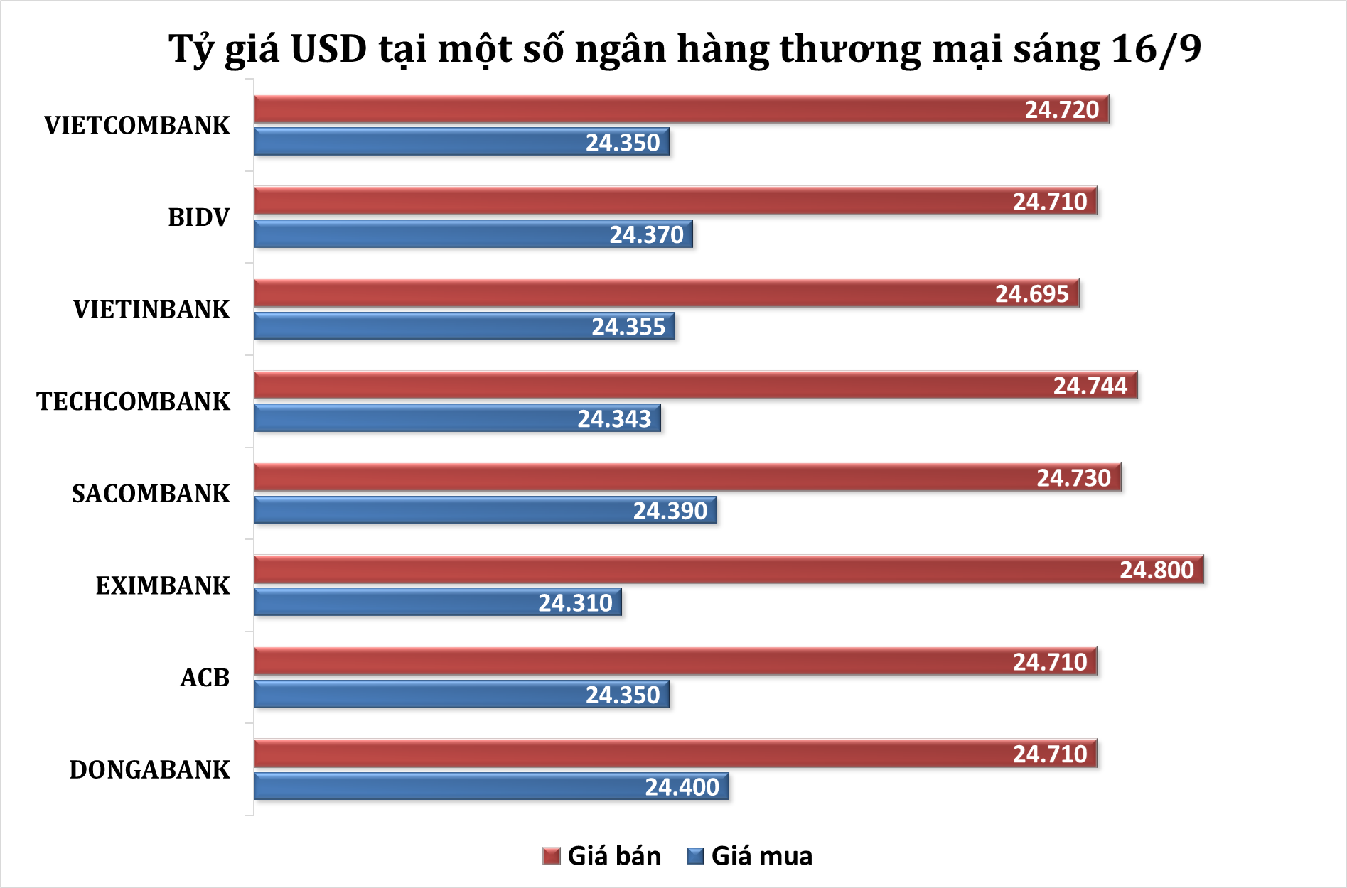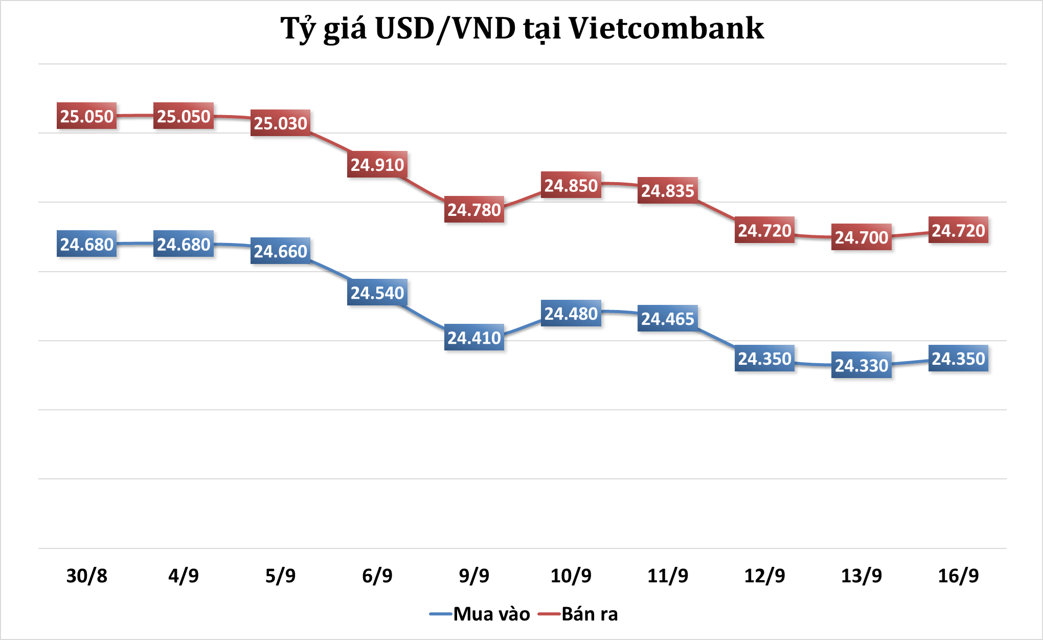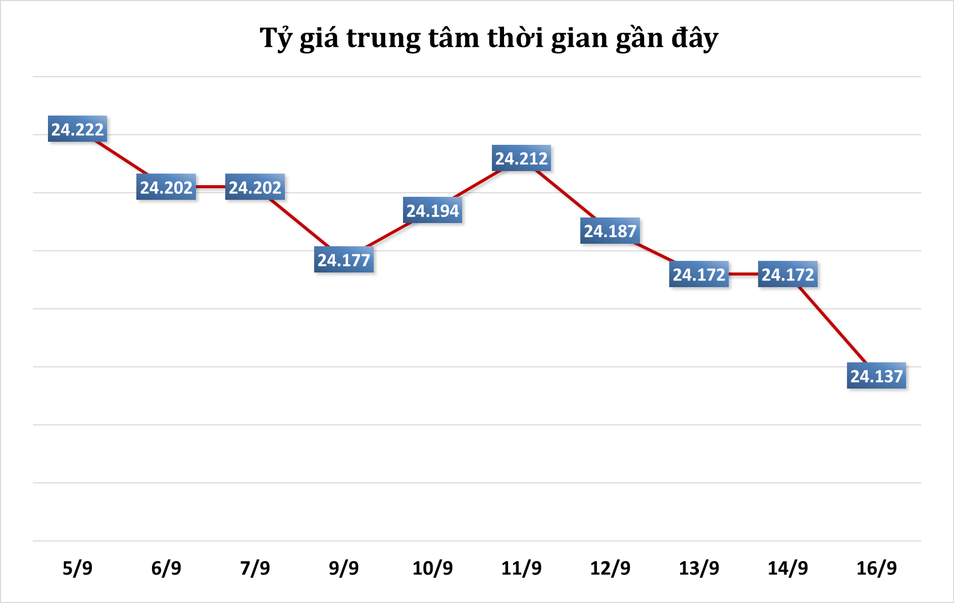 Sáng 16/9: Tỷ giá trung tâm giảm 35 đồng