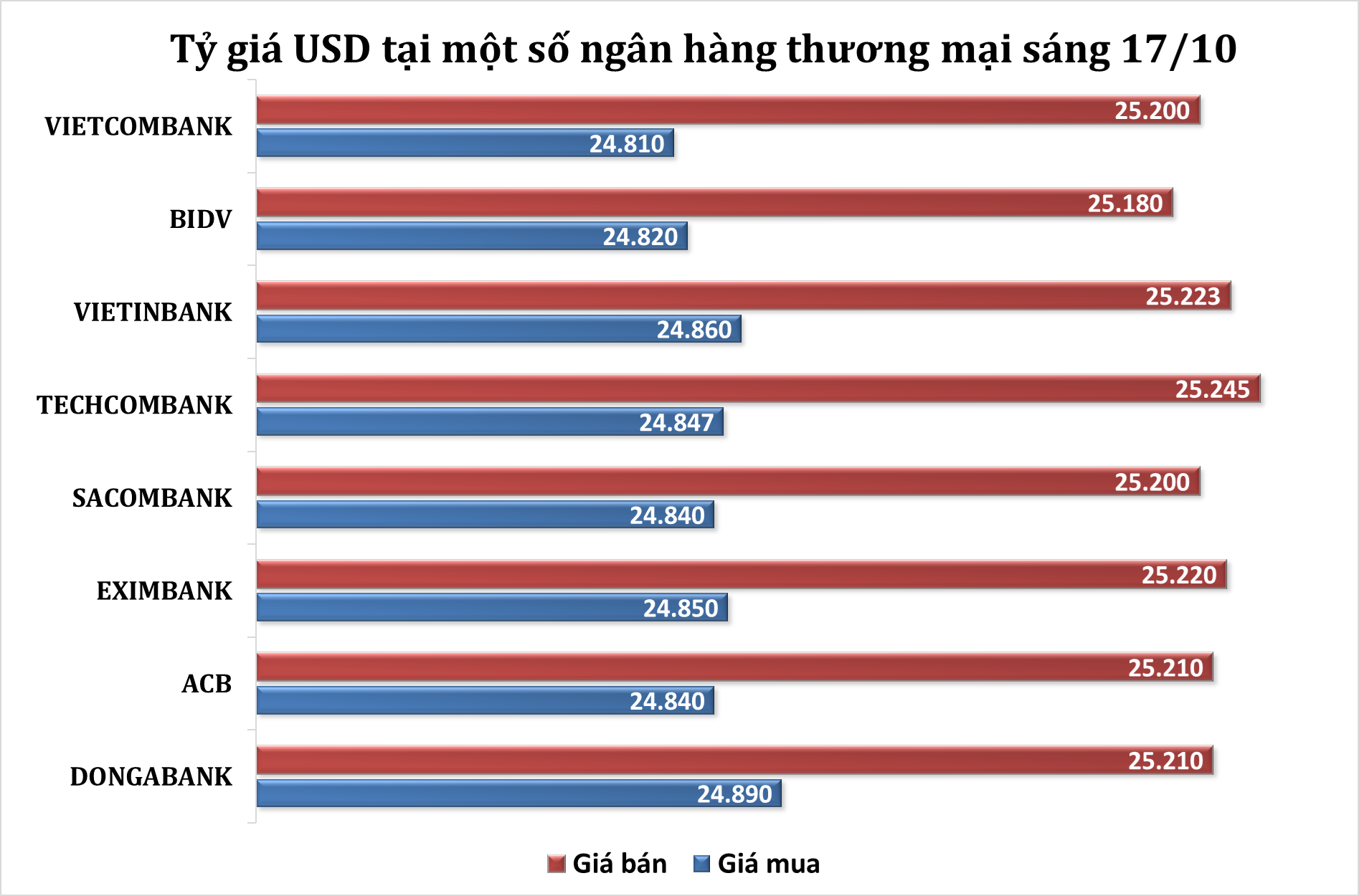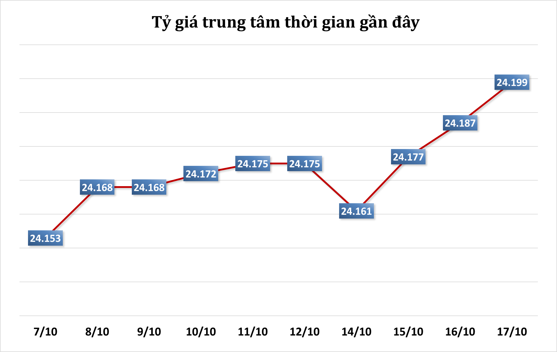 | Sáng 17/10: Tỷ giá trung tâm tiếp tục tăng 12 đồng |