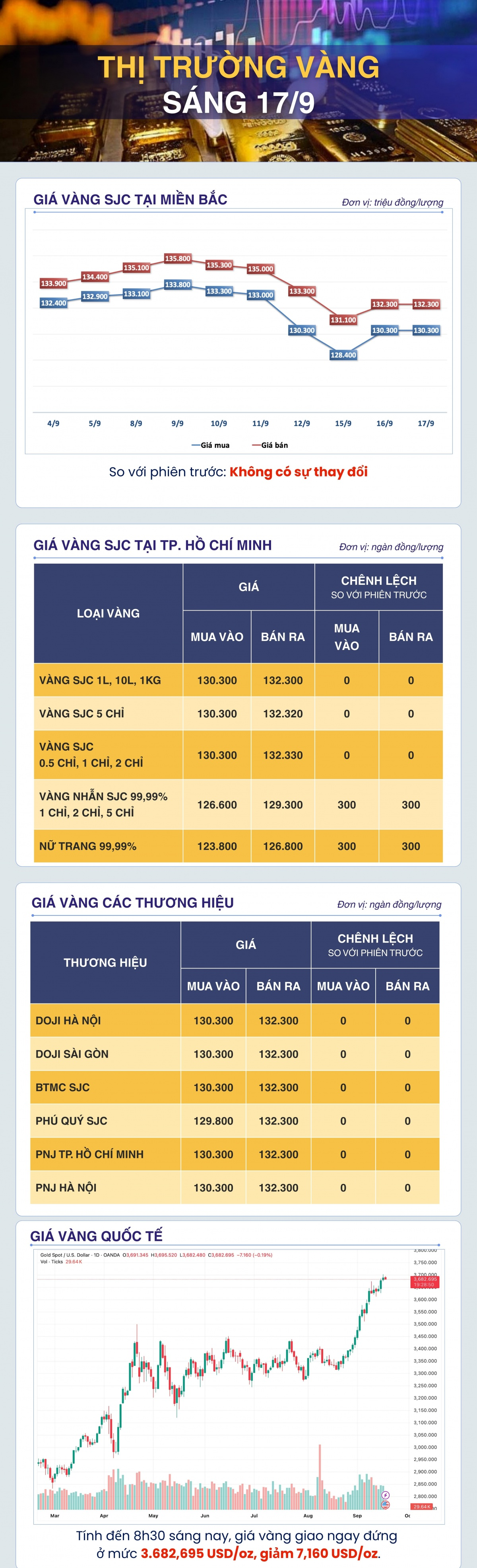 Sáng 17/9: Giá vàng thế giới quay đầu giảm