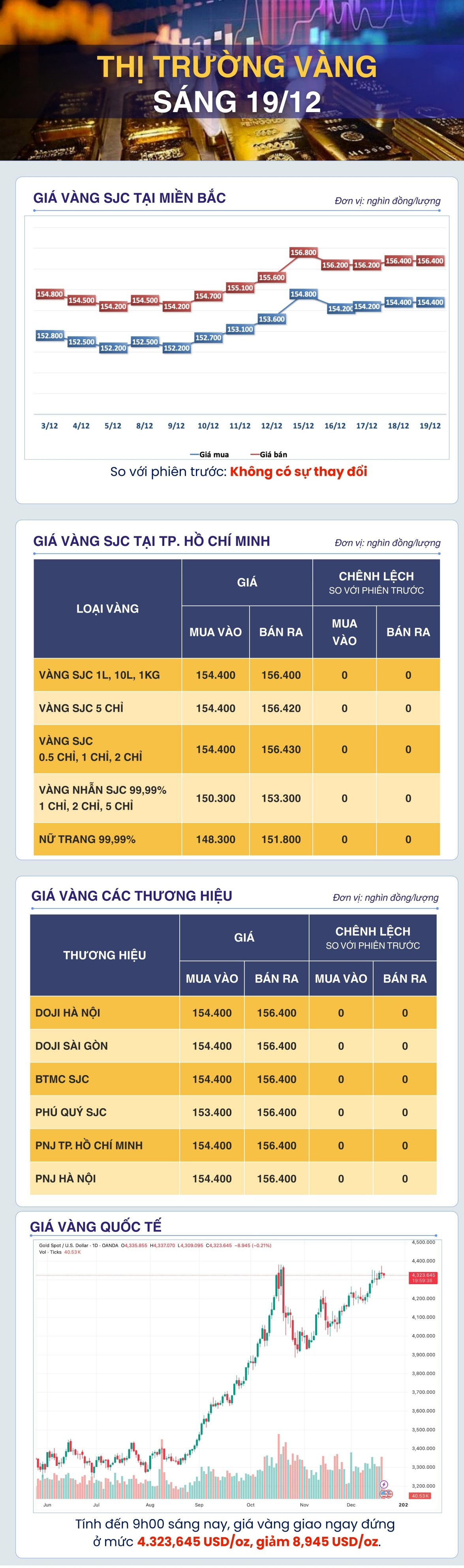 Tính đến cuối phiên hôm qua, giá vàng giao ngay giảm 0,2% xuống còn 4.330,39 USD/oz. Trong khi đó, giá vàng tương lai chốt phiên mất 7,50 USD, tương đương 0,17%, xuống còn 4.364,50 USD/oz, sau khi thiết lập mức đỉnh kỷ lục mới trong phiên tại 4.409,50 USD/oz.
