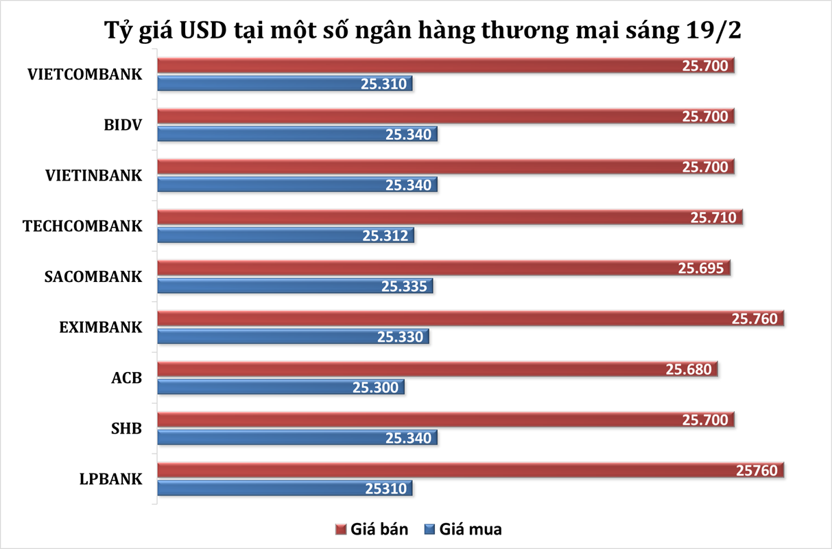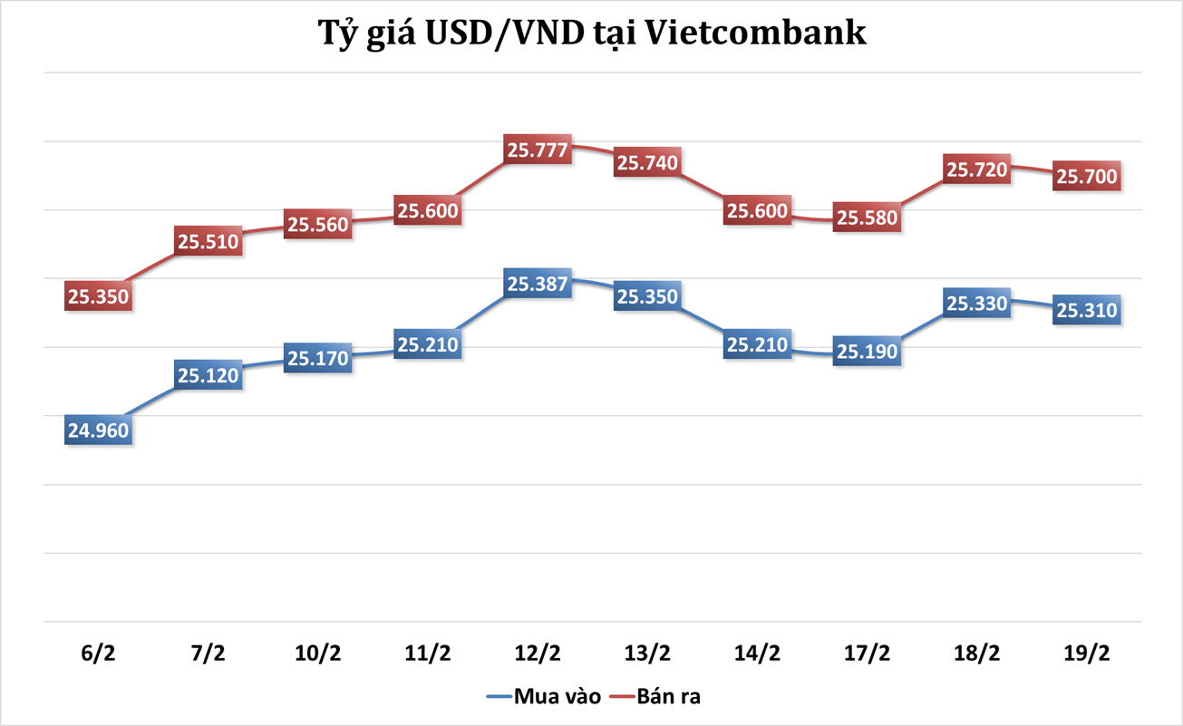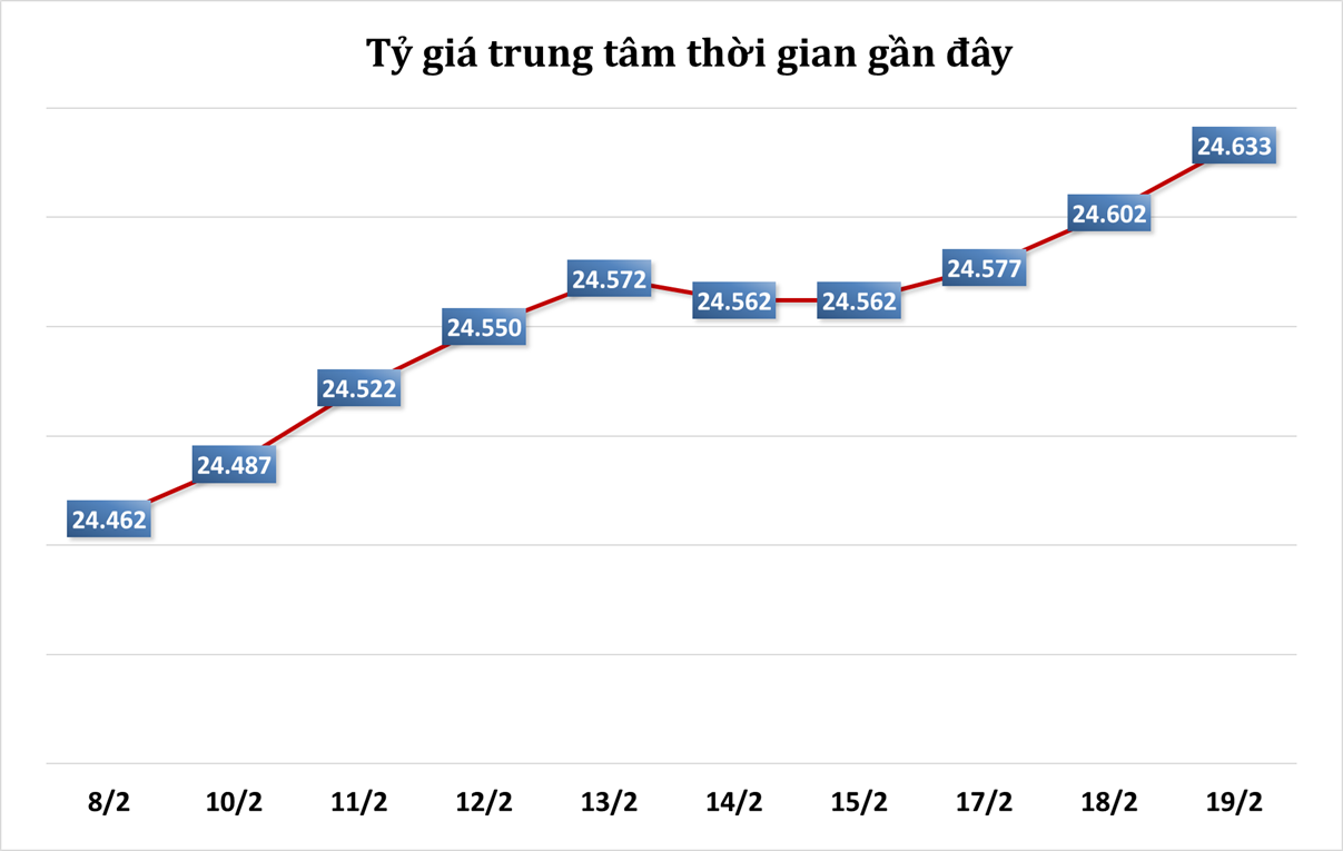 Sáng 19/2: Tỷ giá trung tâm tiếp tục tăng