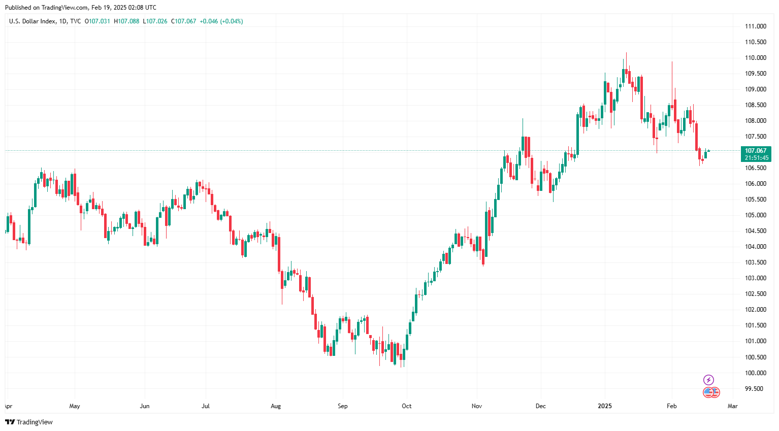 Chỉ số đô la Mỹ (DXY), đo lường biến động của bạc xanh so với 6 đồng tiền chủ chốt (EUR, JPY, GBP, CAD, SEK, CHF), hiện niêm yết ở mức 107,067, tăng 0,037 điểm so với thời điểm mở cửa.