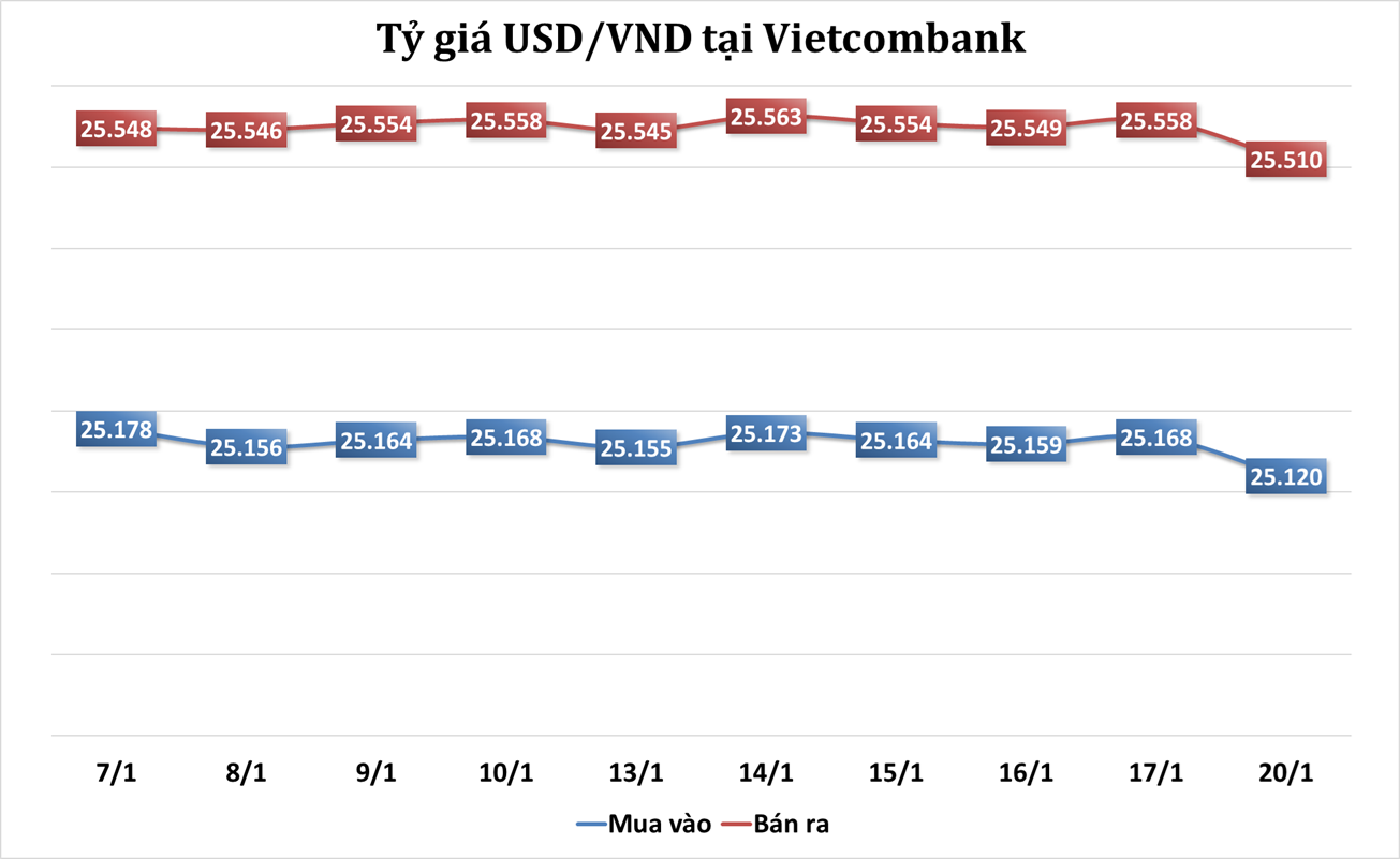 Sáng 20/1: Tỷ giá trung tâm giữ nguyên so với phiên cuối tuần trước