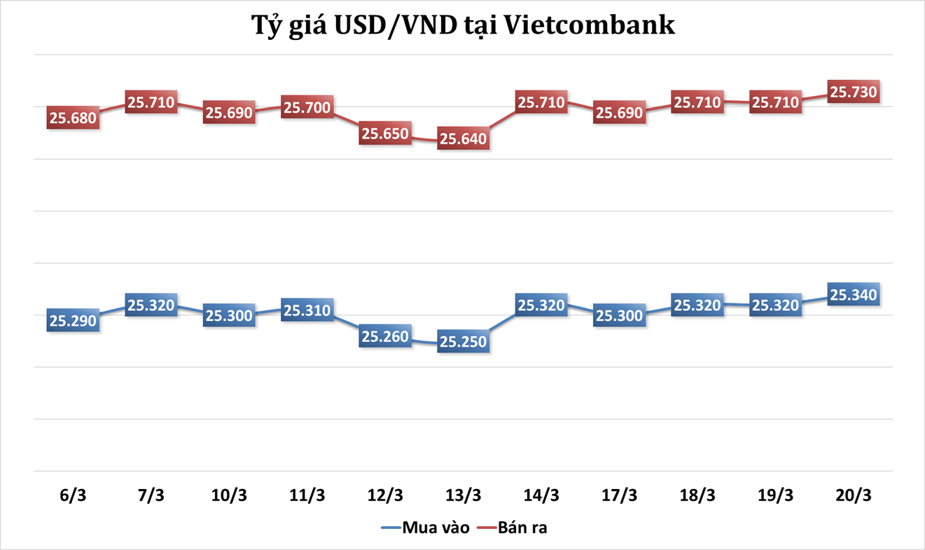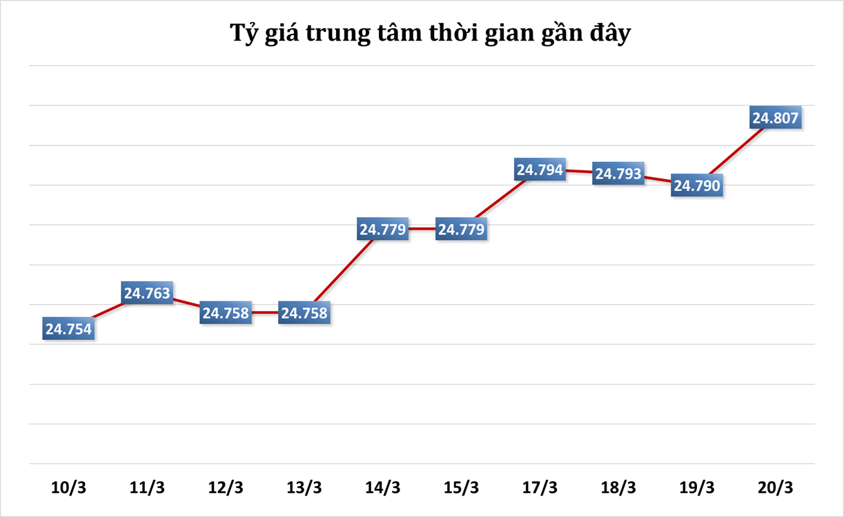 Sáng 20/3: Tỷ giá trung tâm tăng trở lại