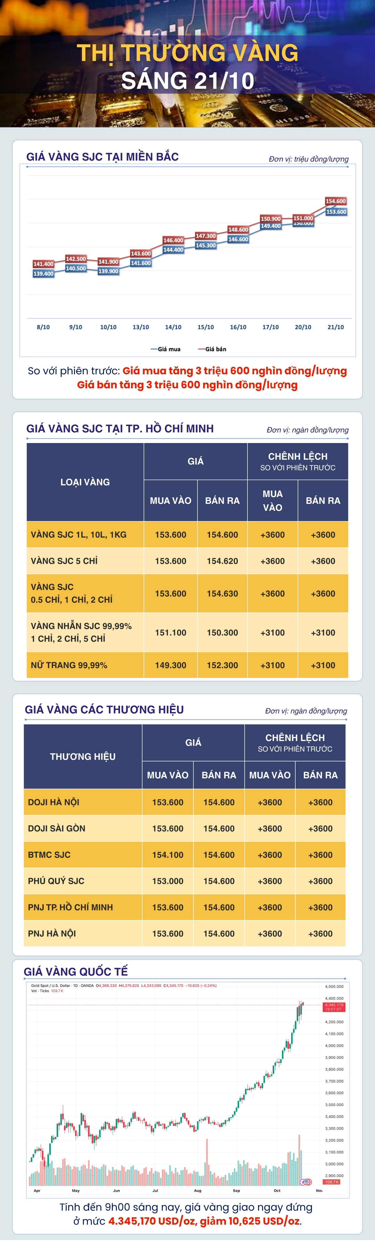 Tính đến cuối phiên hôm qua, giá vàng giao ngay tăng 2,3%, đạt 4.346,39 USD/oz. Trong khi đó, giá vàng tương lai tháng 12 tăng 3,5%, chốt ở mức 4.359,40 USD/oz.