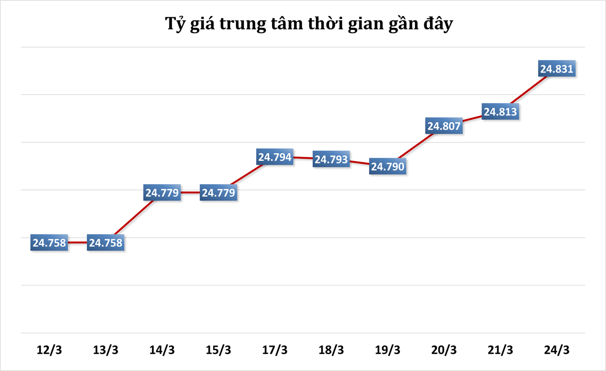 Ngân hàng Nhà nước sáng nay niêm yết tỷ giá trung tâm ở mức 24.831 đồng, tăng 18 đồng so với phiên trước.