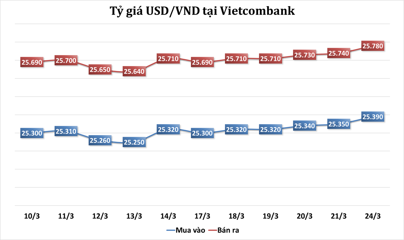 Sáng 24/3: Tỷ giá trung tâm tăng phiên đầu tuần