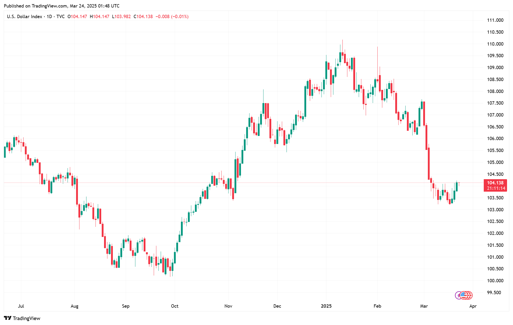 Tuần trước, chỉ số đô la Mỹ tăng 0,4%, đánh dấu tuần tăng đầu tiên trong tháng, dù vẫn chịu áp lực lớn trong năm nay do lo ngại chính sách thuế quan quyết liệt của Trump có thể gây suy thoái kinh tế.