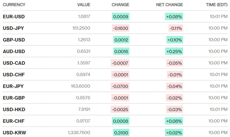 Đồng yên tăng 0,11% lên mức 151,25 yên đổi một USD, sau khi chạm đáy 4 tháng là 151,86 yên đổi một USD vào tuần trước, sát với mức thấp nhất trong 32 năm là gần 152 yên đổi một USD chạm vào năm 2022.