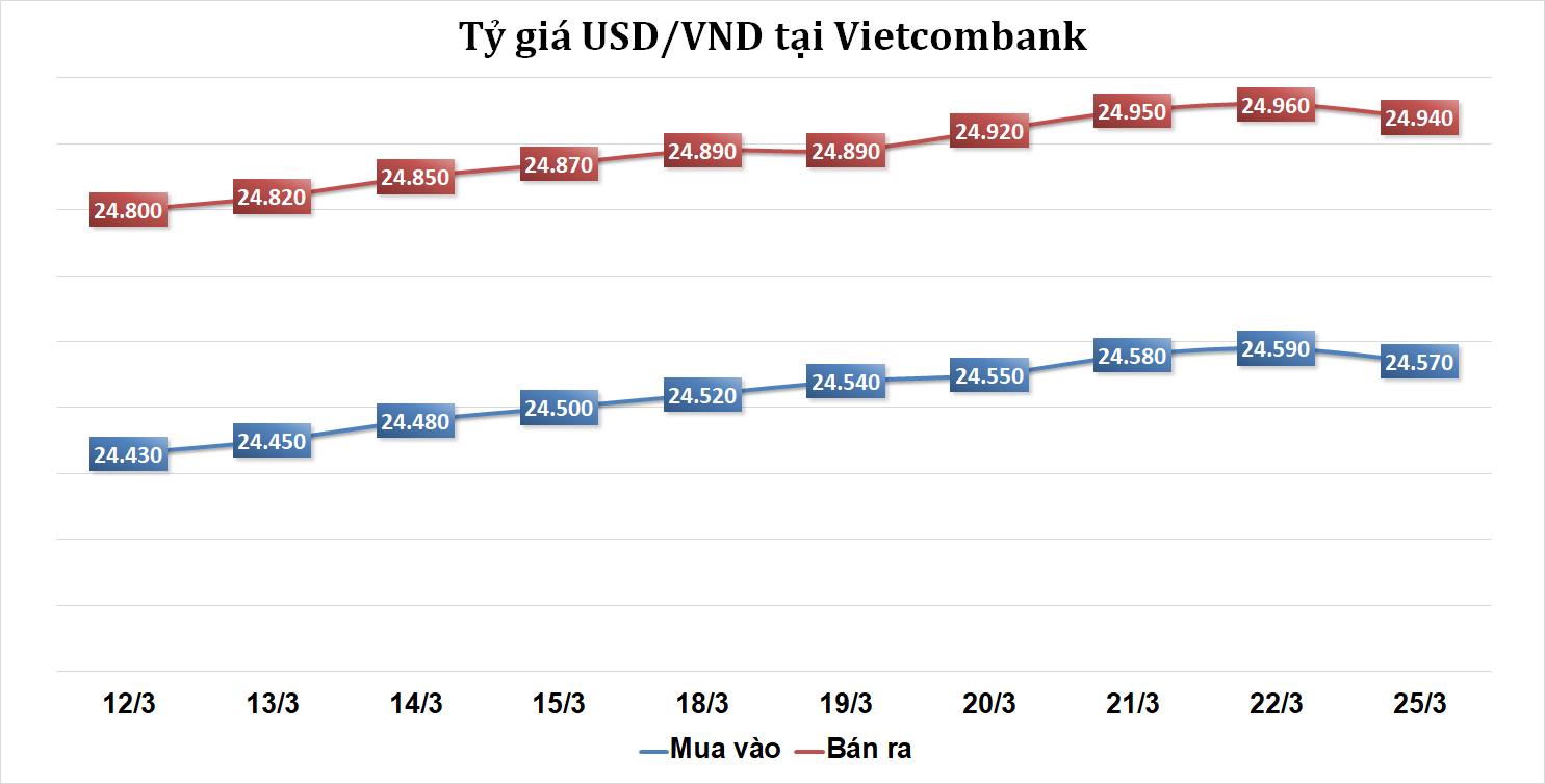 Sáng 25/3: Tỷ giá trung tâm tăng phiên đầu tuần