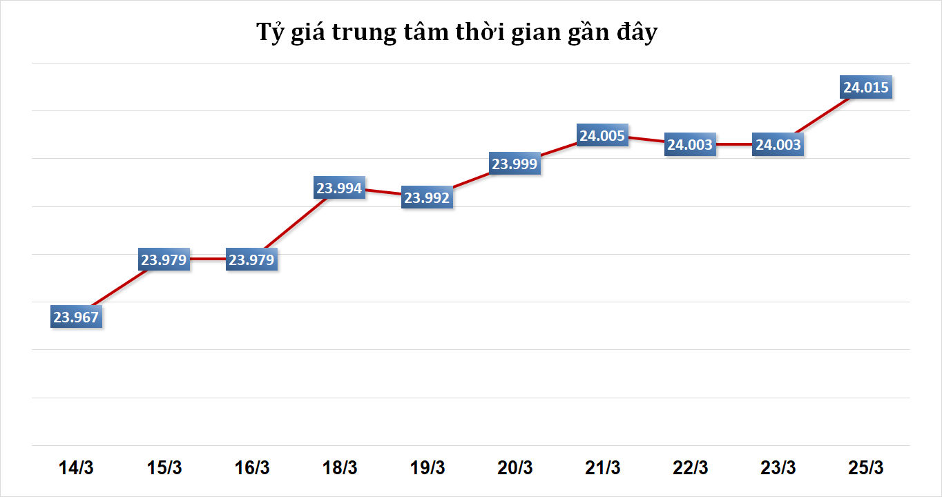 Ngân hàng Nhà nước sáng nay niêm yết tỷ giá trung tâm ở mức 24.015 đồng, tăng 12 đồng so với phiên trước.