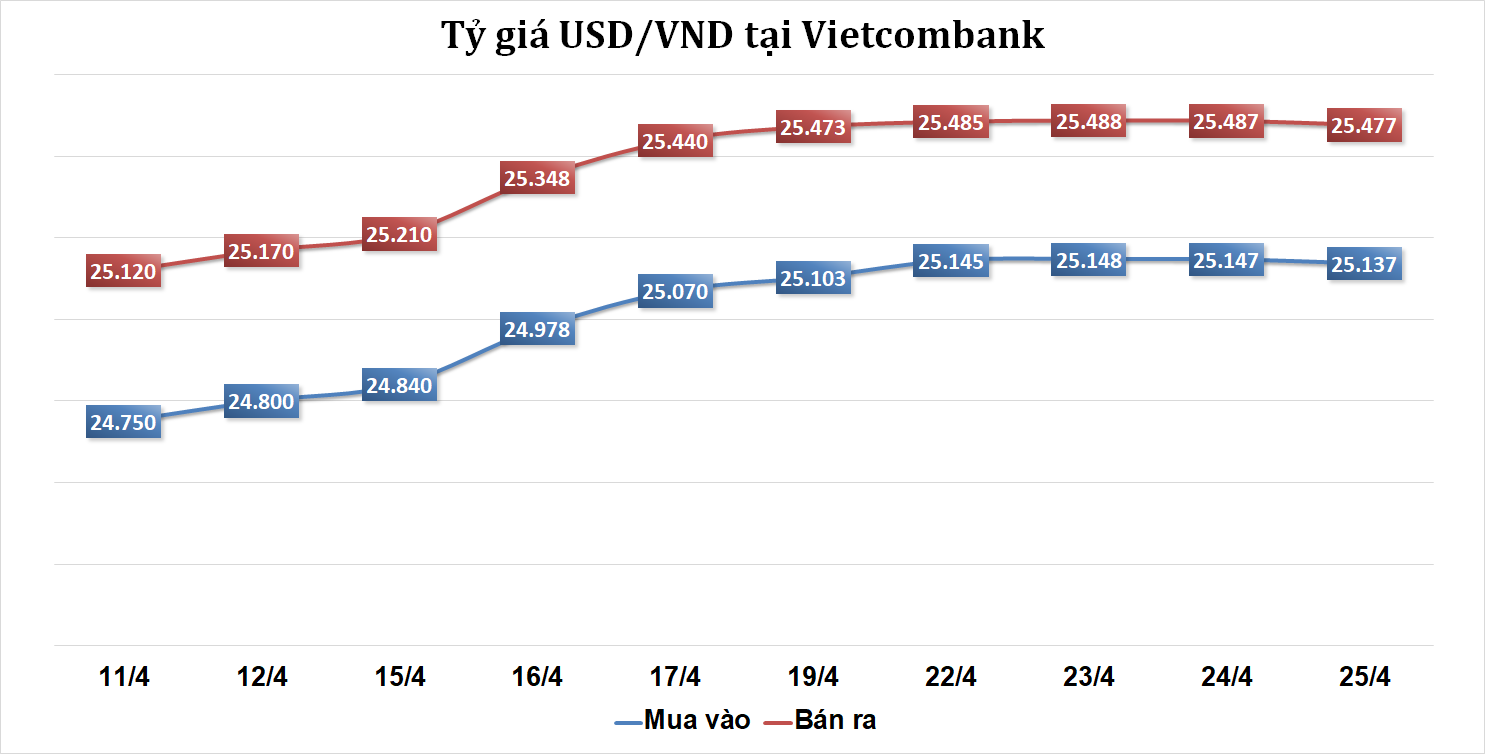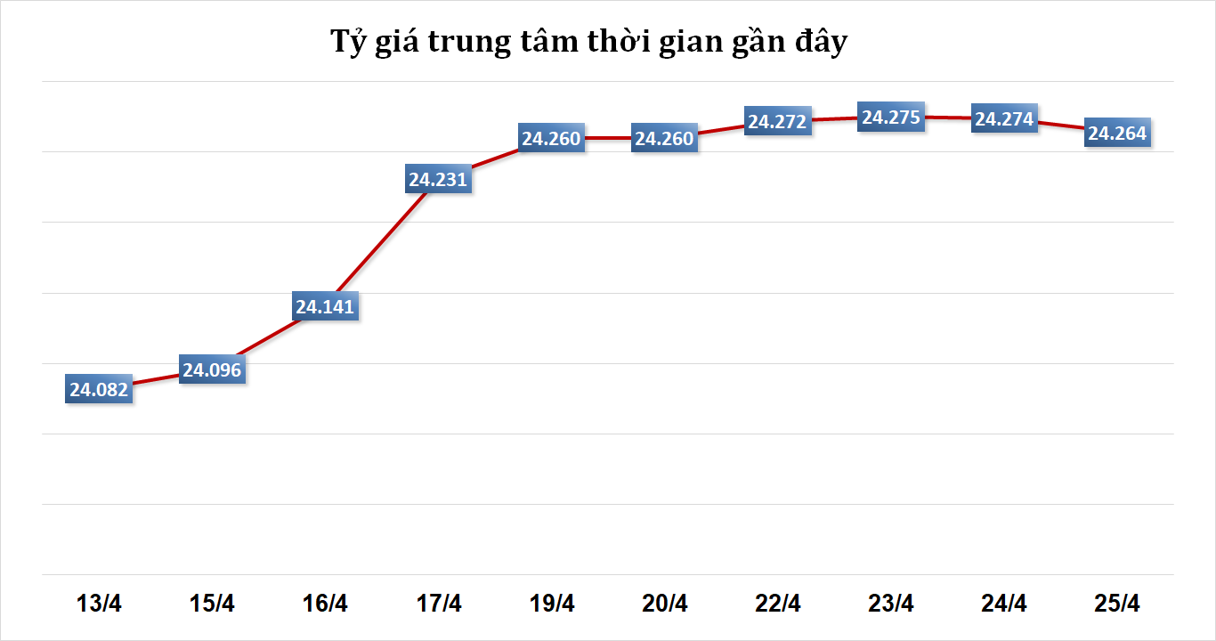Sáng 25/4: Tỷ giá trung tâm tiếp tục giảm