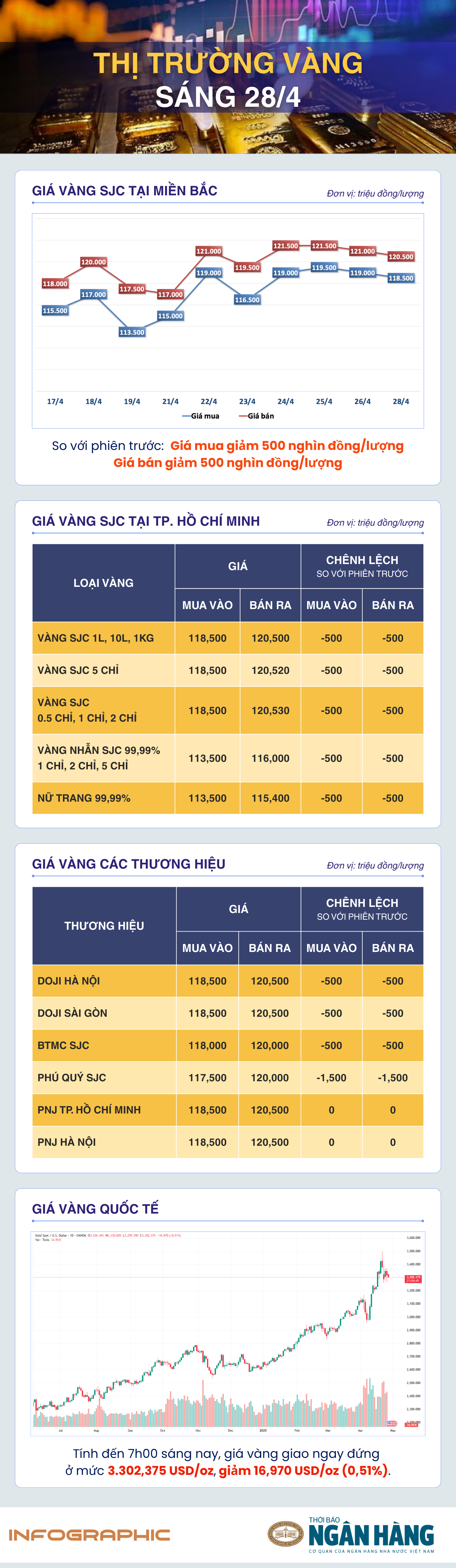 Sáng 28/4: Giá vàng thế giới đứng vững trên mốc 3.300 USD/oz