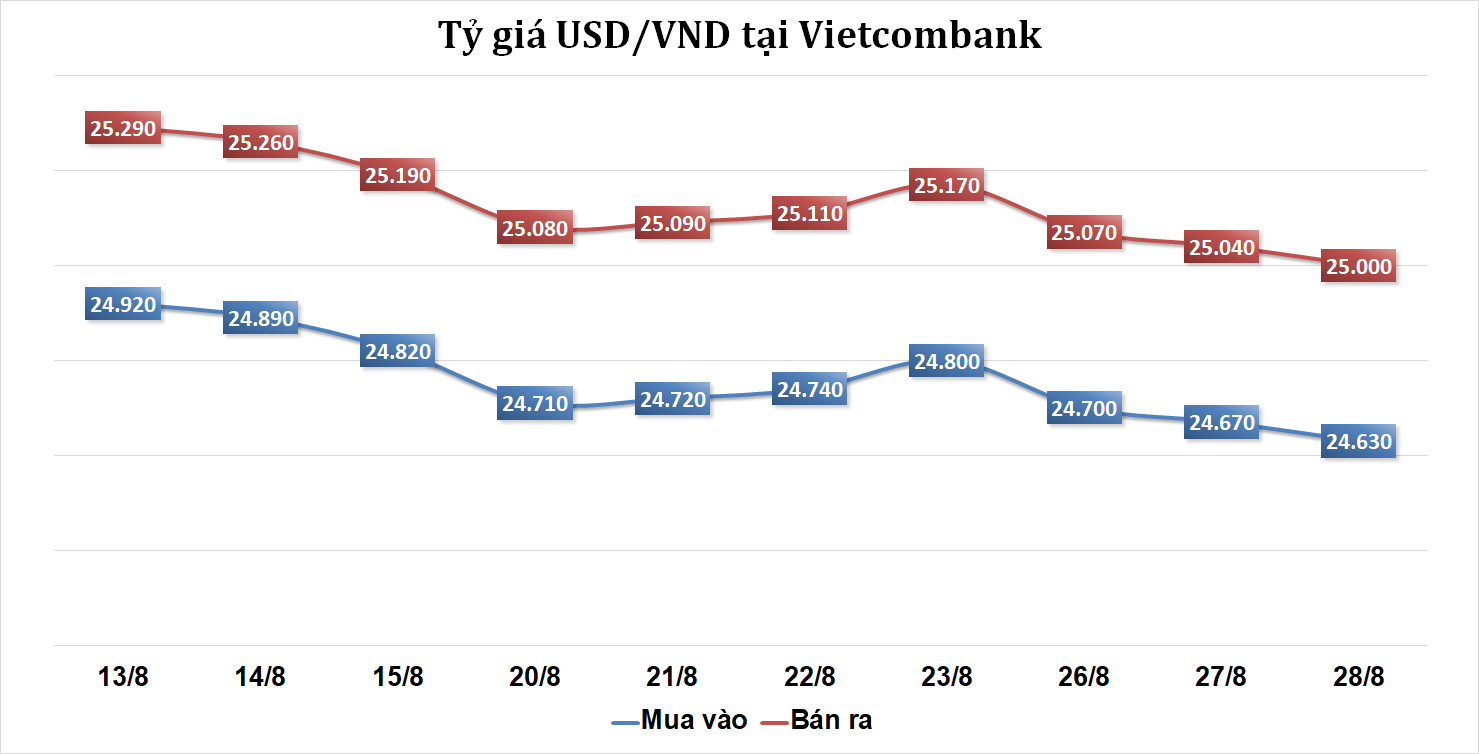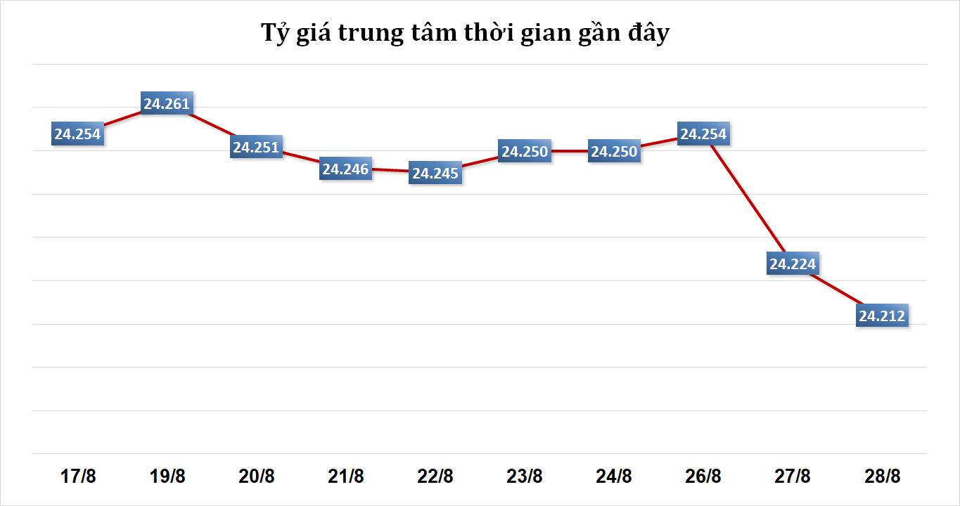 Sáng 28/8: Tỷ giá trung tâm giảm phiên thứ hai liên tiếp