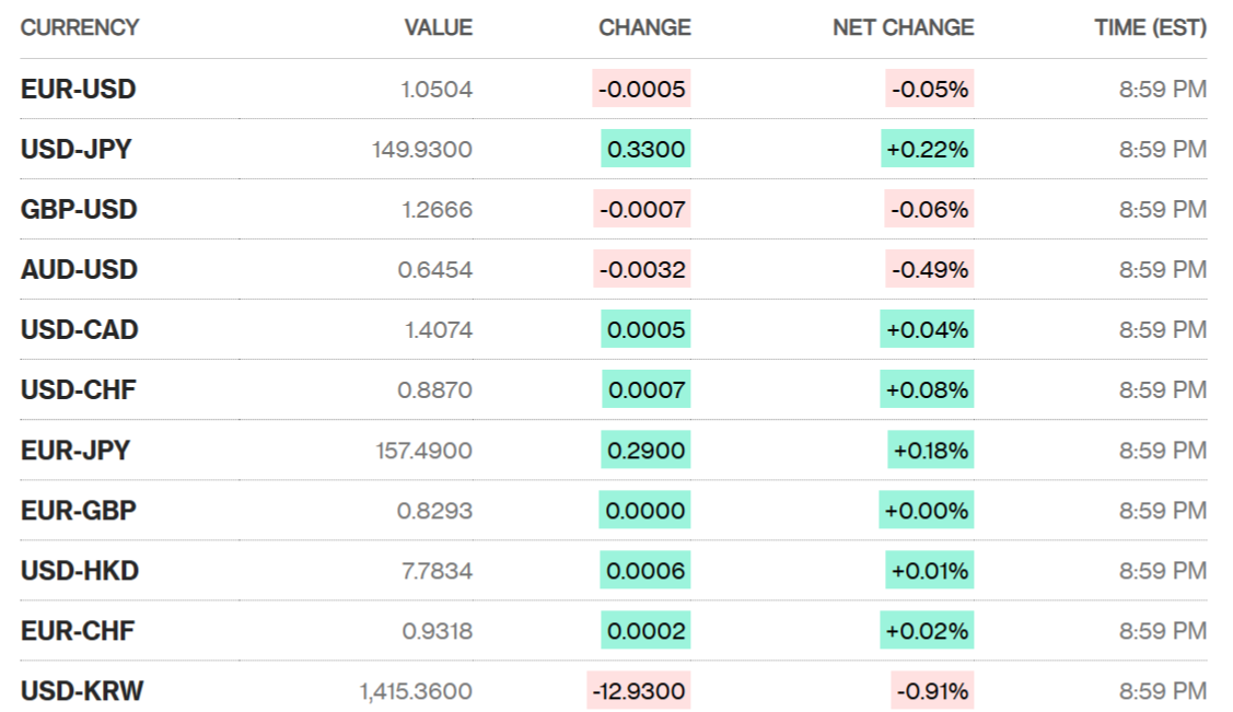 Ở thị trường châu Âu, đồng euro giao dịch ở mức 1,0504 USD, giảm 0,05%, duy trì đà đi ngang trong tuần này khi tình hình khủng hoảng chính trị tại Pháp trở nên căng thẳng hơn.