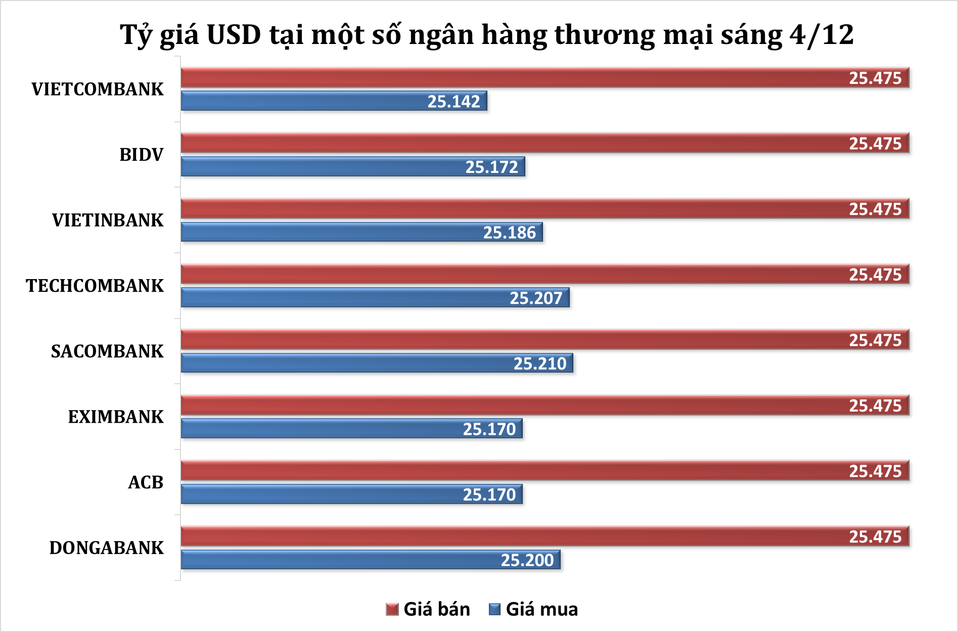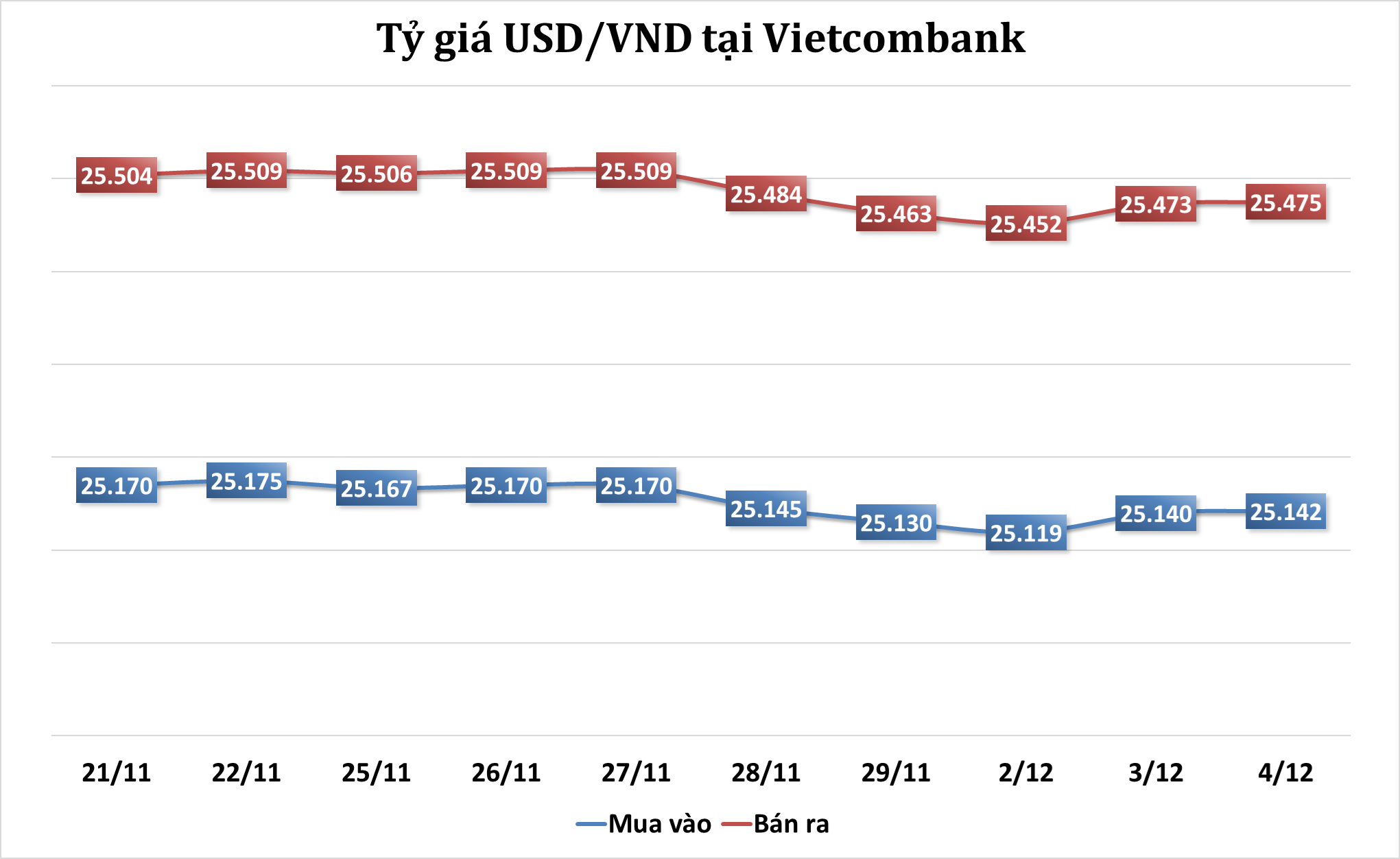 Sáng 4/12: Tỷ giá trung tâm tăng nhẹ 2 đồng