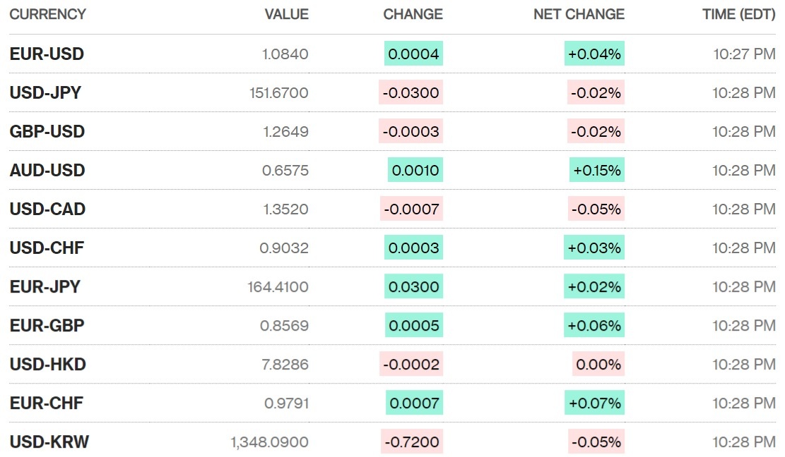 Ở châu Á, đồng yên gần như “đóng băng” do nguy cơ bị giới chức Nhật Bản can thiệp. Hiện đồng tiền này giao dịch ở mức 151,67 yên đổi một USD, tăng 0,02%.
