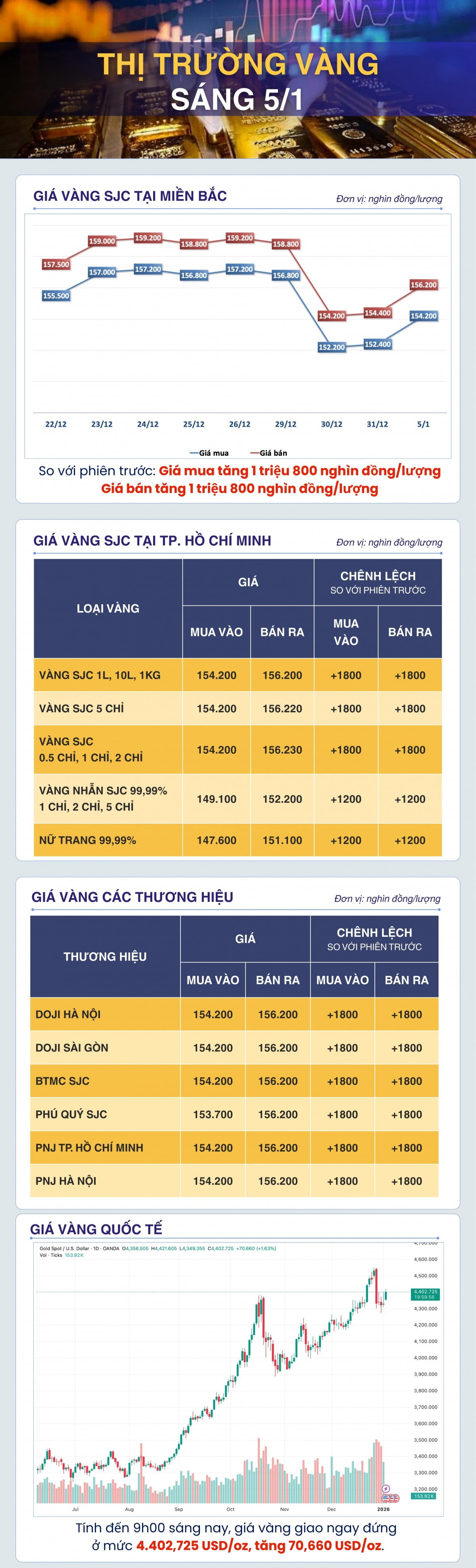 “Theo đó, chúng tôi dự báo giá bình quân theo quý sẽ đạt mức kỷ lục 4.400 USD/oz trong nửa đầu năm 2026, với các đỉnh giao dịch cao hơn đáng kể”, báo cáo nêu rõ.