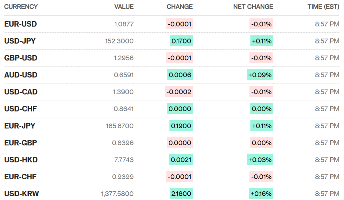 So với yên Nhật, đồng USD tăng 0,11% lên mức 152,30 yên đổi một USD, sau khi giảm xuống mức 151,54 yên đổi một USD vào đêm qua, mức thấp nhất trong một tuần.
