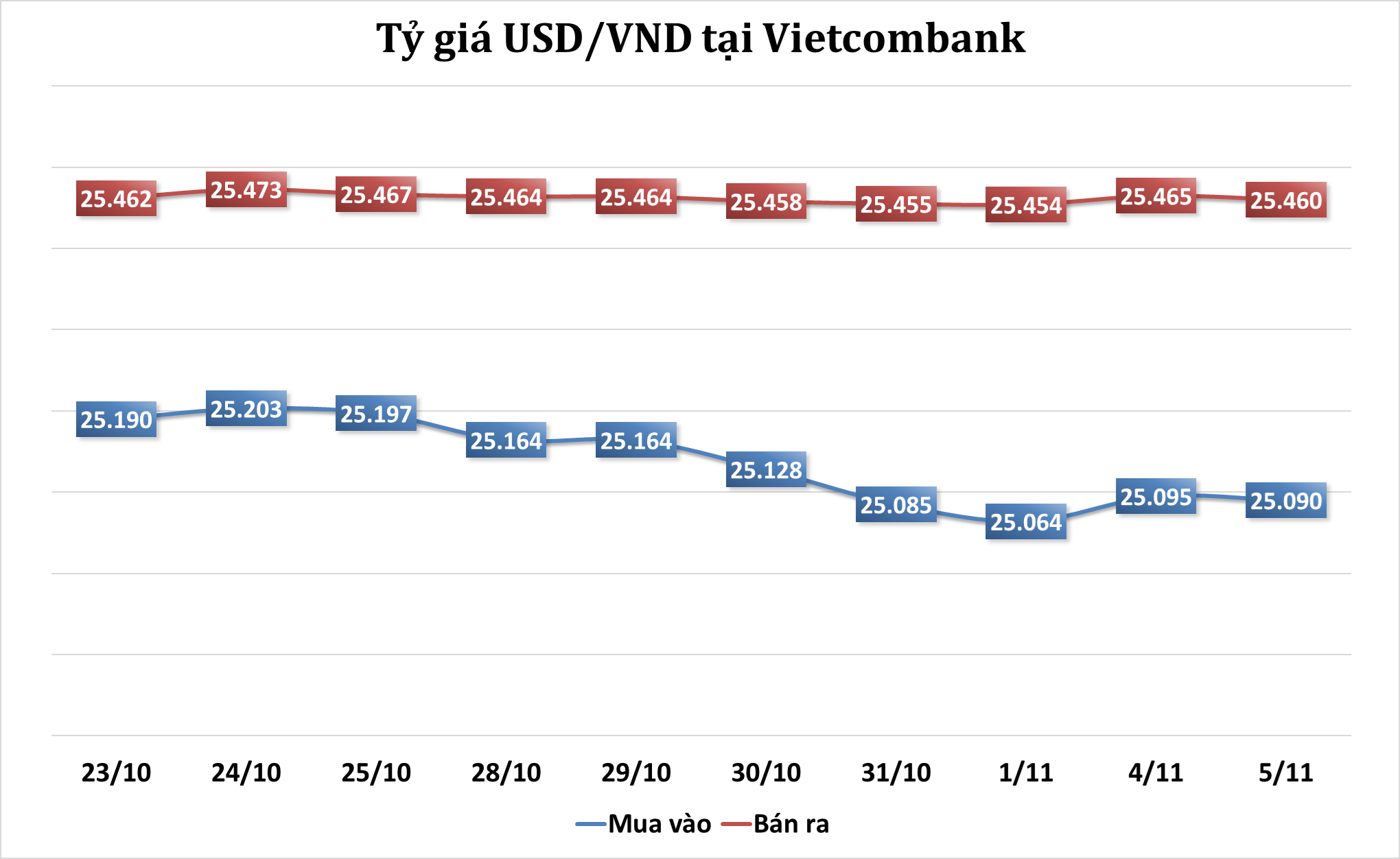 Sáng 5/11: Tỷ giá trung tâm giảm 5 đồng