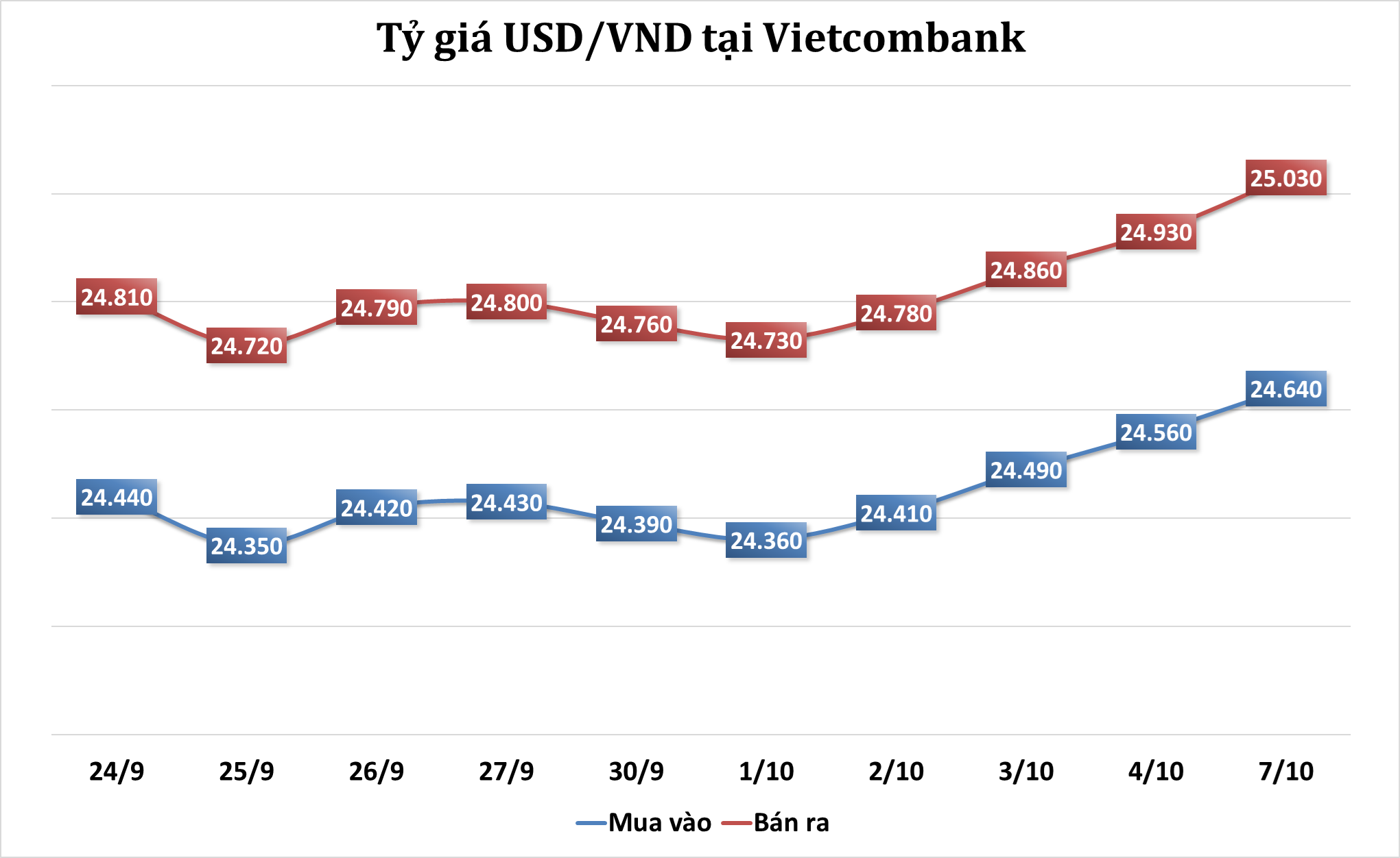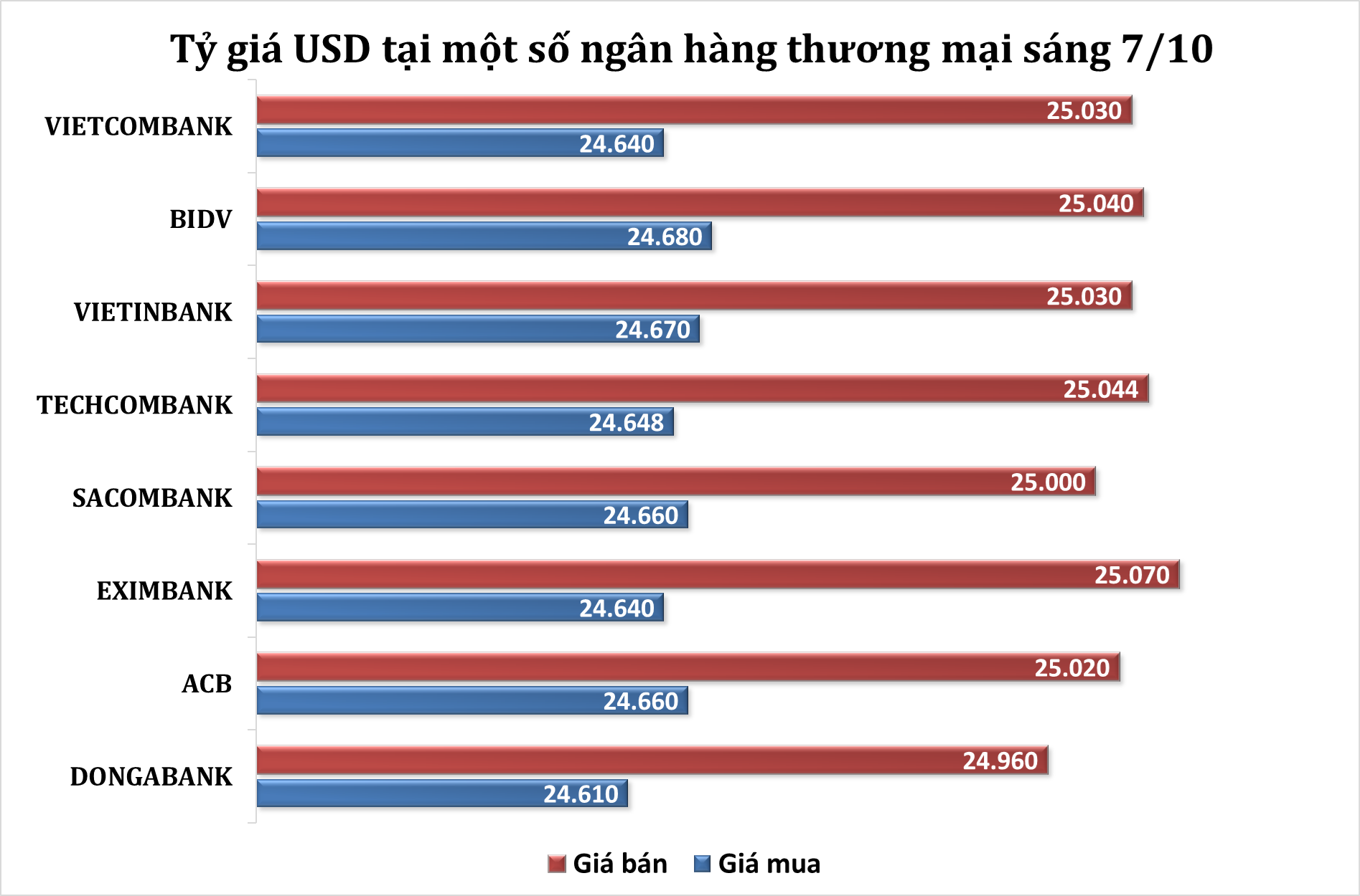 Sáng 7/10: Tỷ giá trung tâm tăng 20 đồng