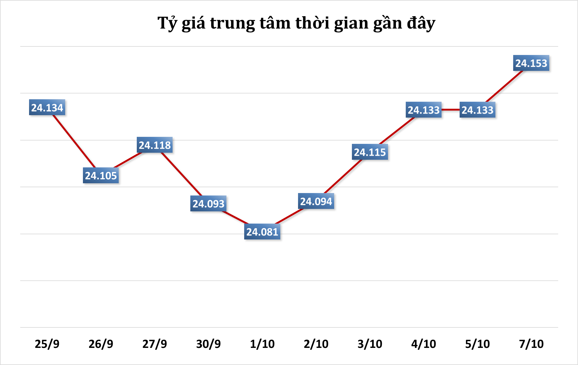 Ngân hàng Nhà nước sáng nay niêm yết tỷ giá trung tâm ở mức 24.153 đồng, tăng 20 đồng so với phiên trước.