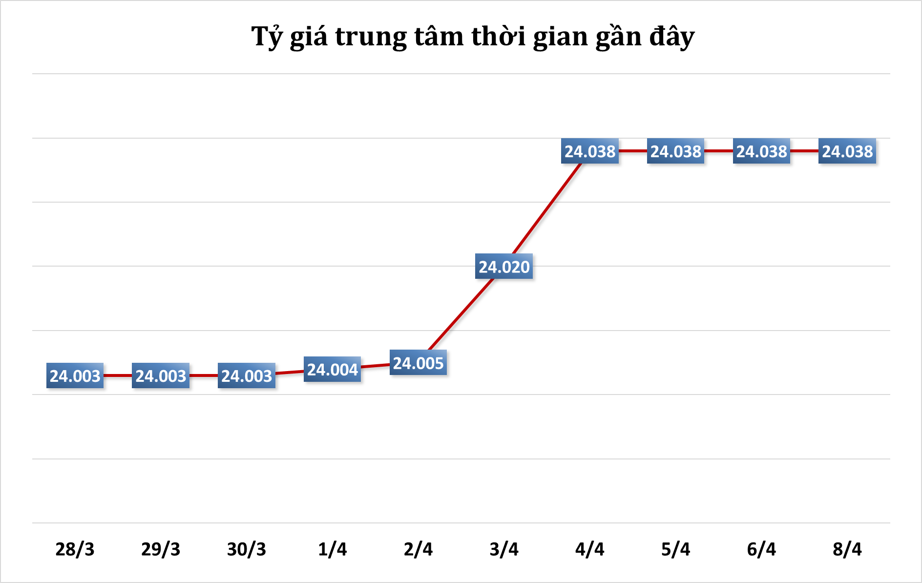 Ngân hàng Nhà nước sáng nay niêm yết tỷ giá trung tâm ở mức 24.038 đồng, không đổi so với phiên trước.