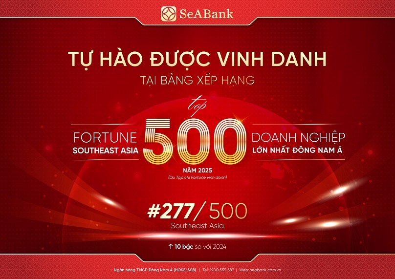 Với doanh thu năm 2024 đạt gần 950 triệu USD và tăng trưởng lợi nhuận 23,3%, SeABank được xếp hạng 40/76 tại Việt Nam, tăng 10 bậc so với bảng xếp hạng năm 2024 và đạt thứ hạng 277/500 tại Đông Nam Á trong bảng xếp hạng năm 2025. Điều này khẳng định vị thế và uy tín của SeABank ở tầm khu vực và quốc tế, đồng thời cho thấy hiệu quả của chiến lược kinh doanh linh hoạt, bền vững theo tôn chỉ “lấy khách hàng làm trọng tâm” giúp Ngân hàng giữ vững đà tăng trưởng trong bối cảnh thị trường có nhiều biến động.