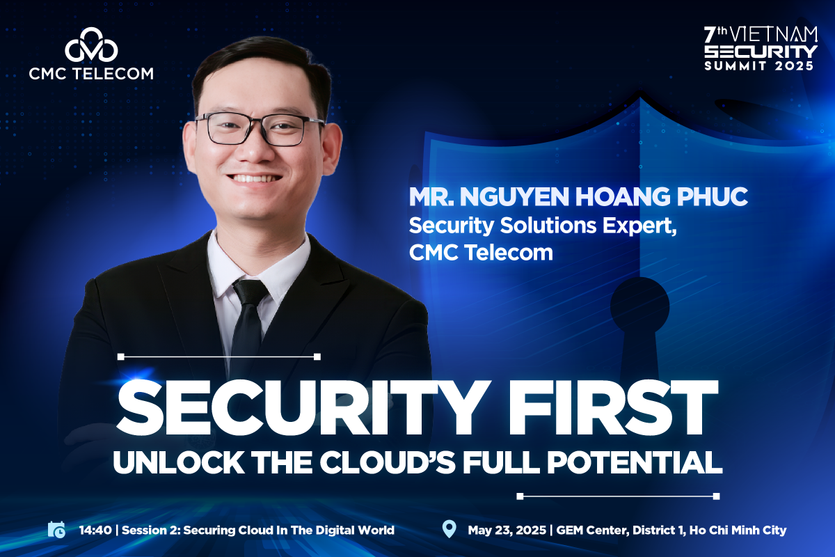 Trong Hội thảo chuyên đề 2 tại sự kiện, ông Nguyễn Hoàng Phúc - chuyên gia tư vấn bảo mật của CMC Telecom sẽ trình bày bài tham luận với chủ đề: “Security First - Unlock the Cloud’s Full Potential”, chia sẻ các góc nhìn chiến lược và bài học thực tiễn từ quá trình triển khai bảo mật cho các tổ chức đang dịch chuyển lên Cloud.