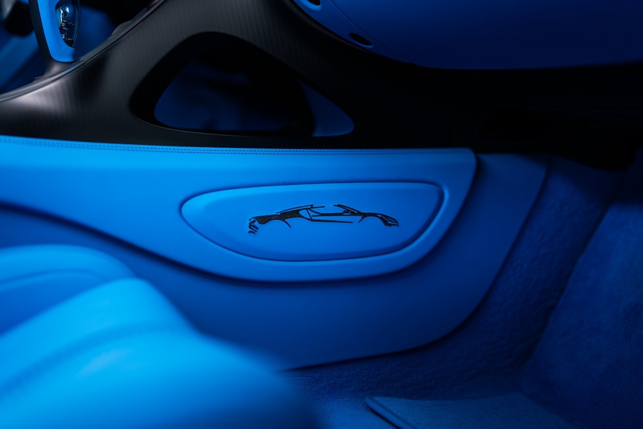 Khoang nội thất sử dụng da cao cấp, chi tiết sợi carbon mờ và hệ thống cá nhân hóa tinh vi theo yêu cầu khách hàng. Nắp động cơ làm hoàn toàn bằng sợi carbon, điểm nhấn bằng nhôm đánh bóng, càng làm nổi bật tính thủ công trong từng đường nét.