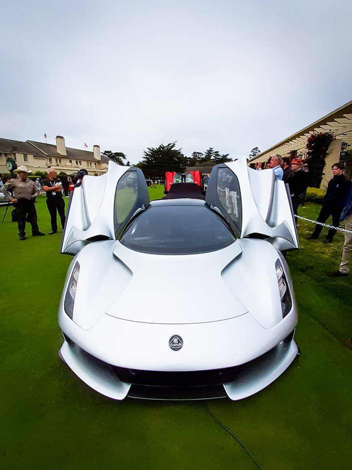 Gần một tháng sau khi được công bố bởi Lotus, Evija đã xuất hiện tại sự kiện công khai đầu tiên là Pebble Beach – một sự kiện không thể phù hợp hơn với một siêu xe triệu USD khi là nơi quy tụ của giới sưu tầm xe và thượng lưu của cả phương Tây trong tháng 8.