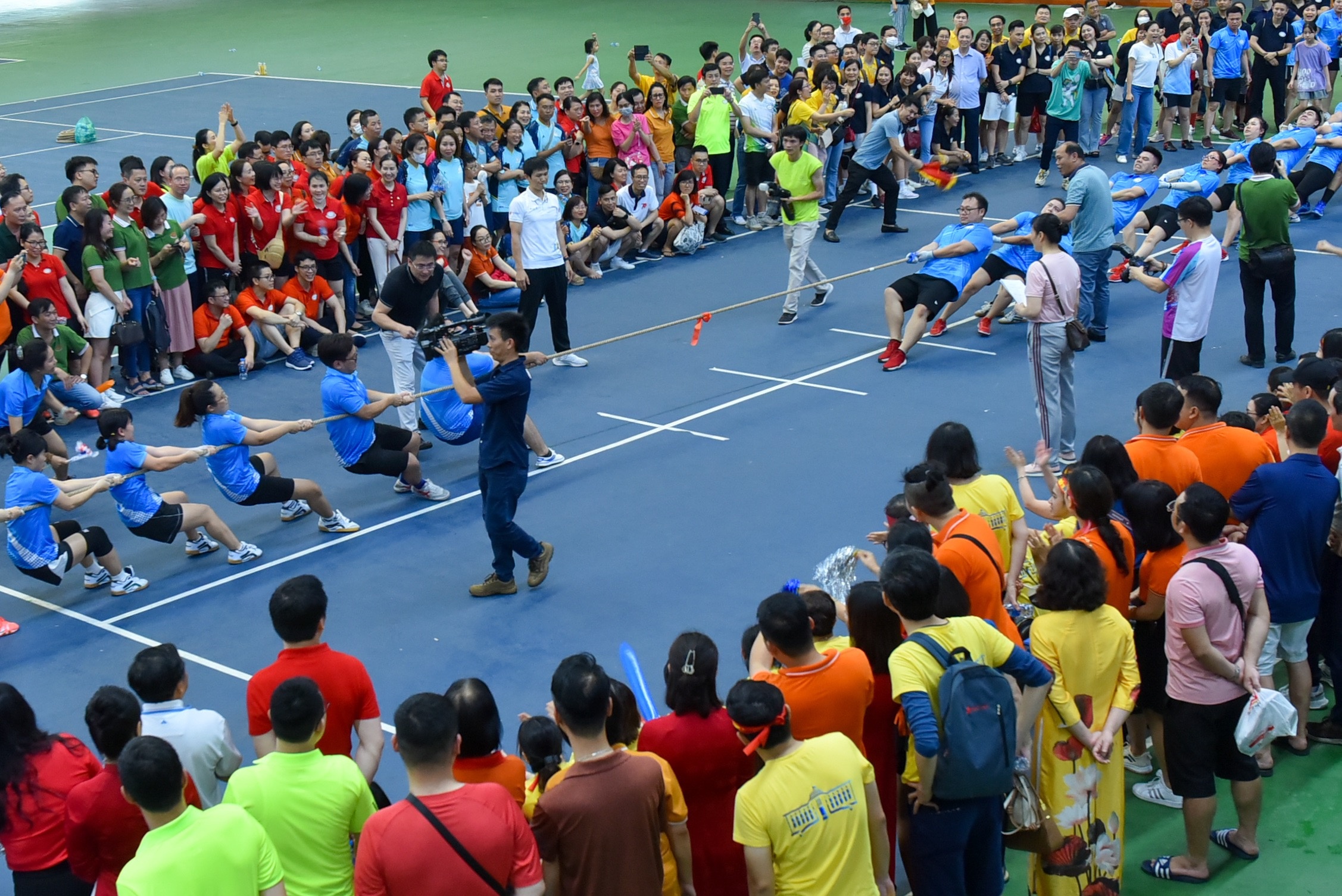 | Phần thi kéo co thu hút được sự theo dõi và cổ vũ của đông đảo đoàn viên. |