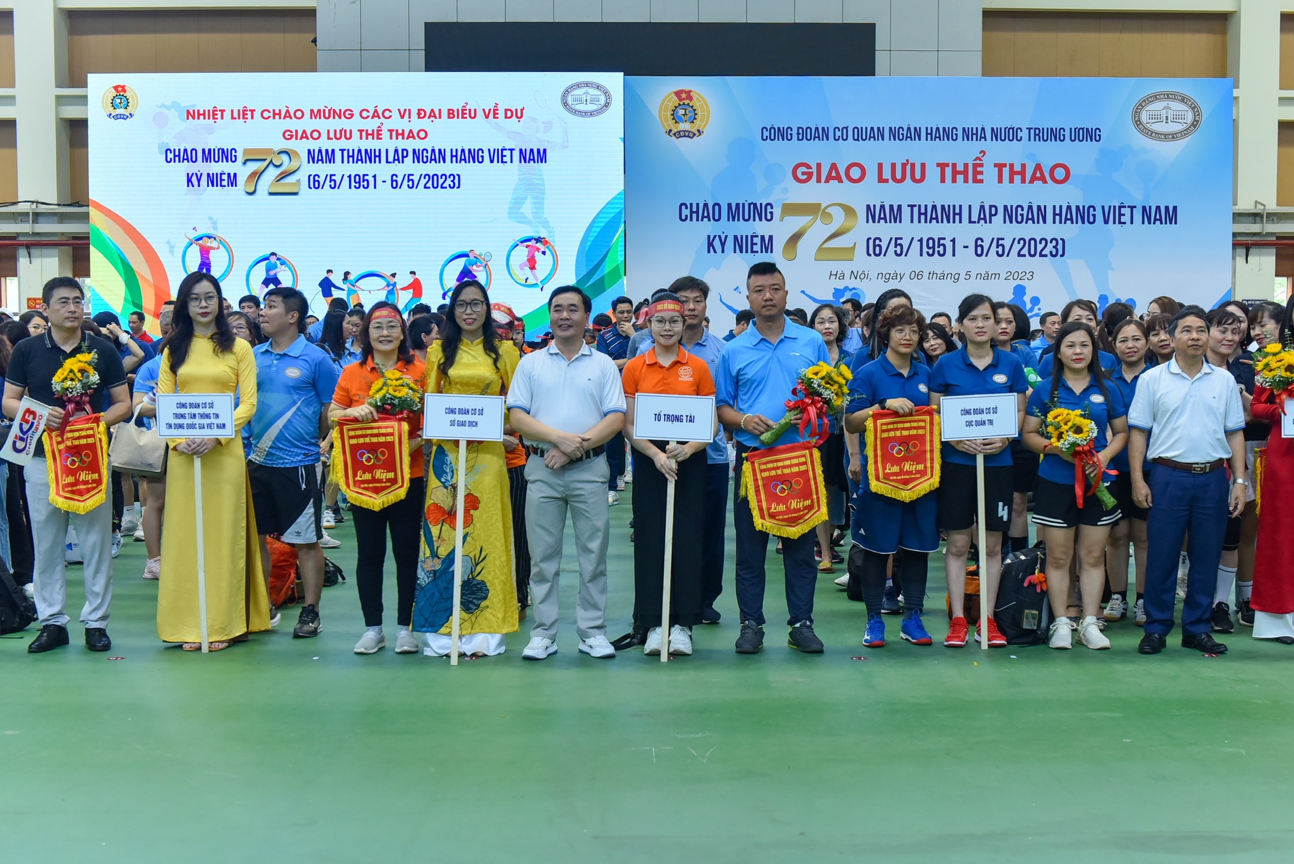 | Chương trình Giao lưu thể thao thu hút 500 vận động viên đến từ 26 công đoàn cơ sở thuộc Công đoàn Cơ quan NHNN Trung ương tham gia. |