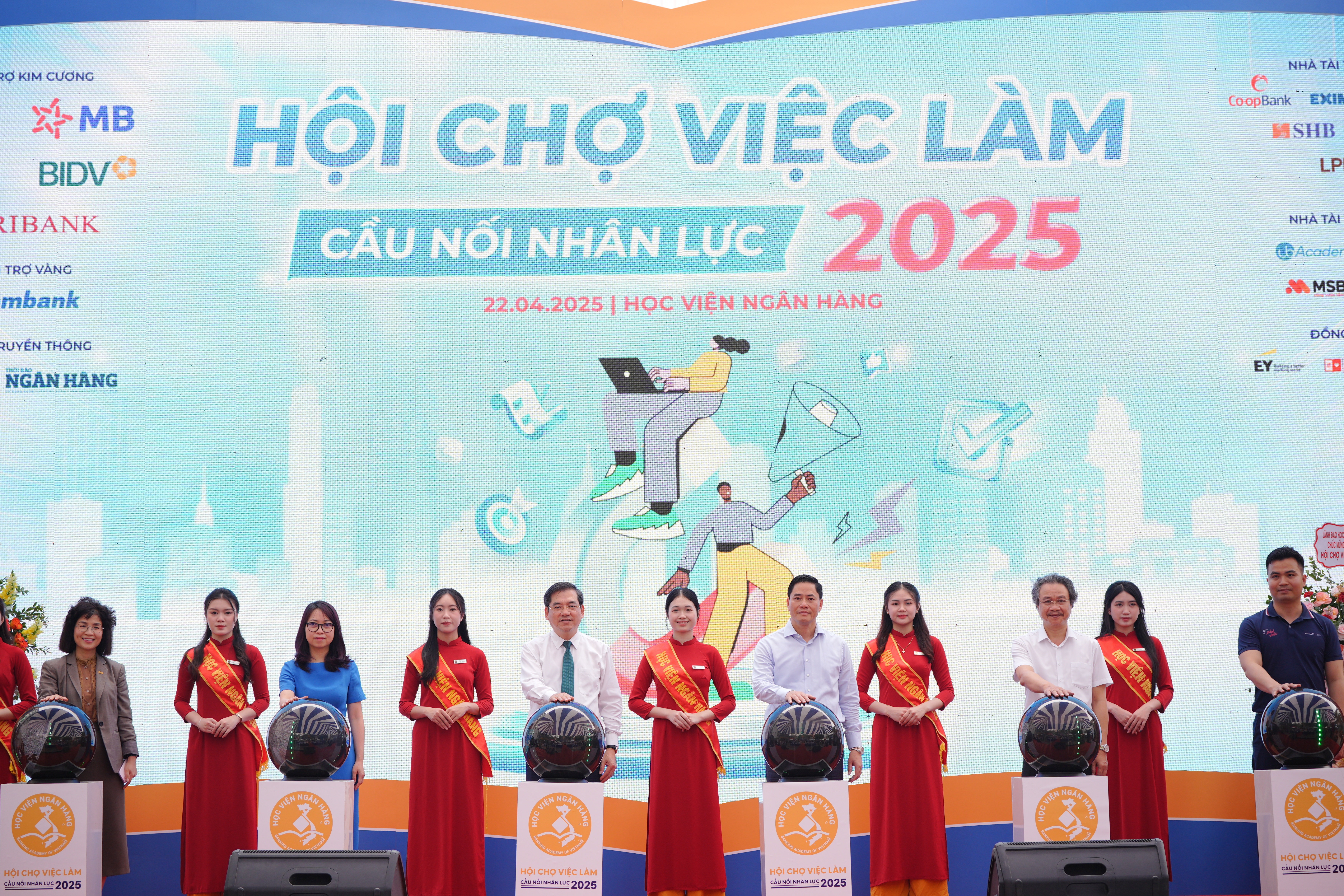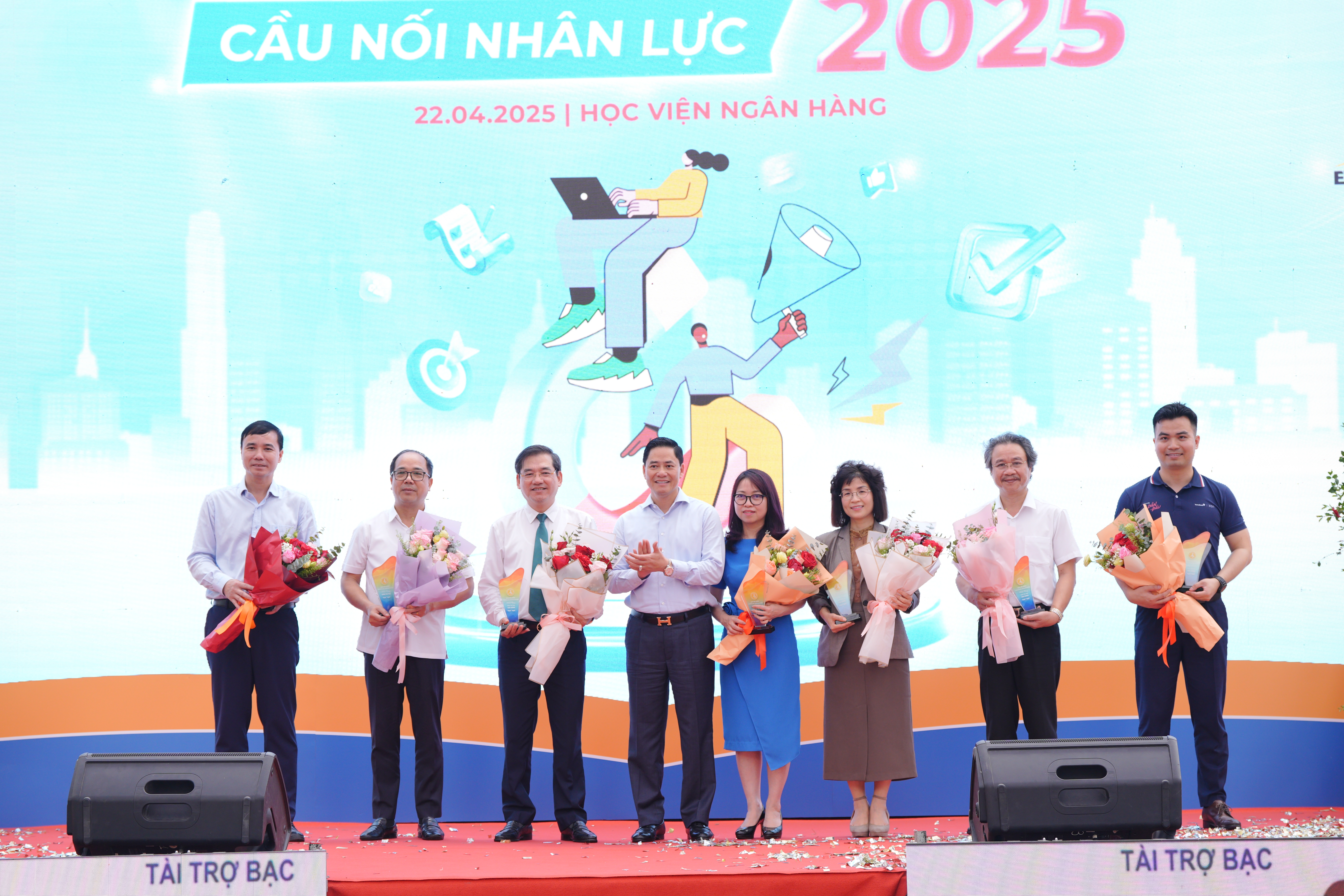 Tham dự lễ khai mạc có nhà báo Nguyễn Mạnh Hưng, Tổng Biên tập Báo Tuổi trẻ Thủ đô; nhà báo Trần Trung Thượng, Phó Tổng Biên tập Thời báo Ngân hàng; ông Nguyễn Tiến Phát, đại diện Vụ Tổ chức cán bộ - Ngân hàng Nhà nước Việt Nam. Về phía Học viện Ngân hàng có PGS.TS. Bùi Hữu Toàn, Bí thư Đảng ủy, Chủ tịch Hội đồng Học viện, Trưởng Ban chỉ đạo Tổ chức Hội chợ việc làm 2025; PGS.TS. Phạm Thị Hoàng Anh, Phó Giám đốc phụ trách Ban Giám đốc Học viện; PGS.TS. Nguyễn Thanh Phương, Phó Giám đốc Học viện, Phó trưởng Ban Tổ chức Hội chợ việc làm 2025 cùng đại diện các nhà tài trợ gồm các ngân hàng, doanh nghiệp…