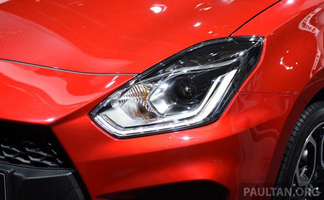 So với bản tiêu chuẩn, Swift Sport mang diện mạo hầm hố và thể thao hơn. Thiết kế cản gầm được tinh chỉnh với 2 hốc gió tách riêng biệt, lưới tản nhiệt rộng hơn tạo hình lướt sóng thay vì tổ ong như trên bản tiêu chuẩn.