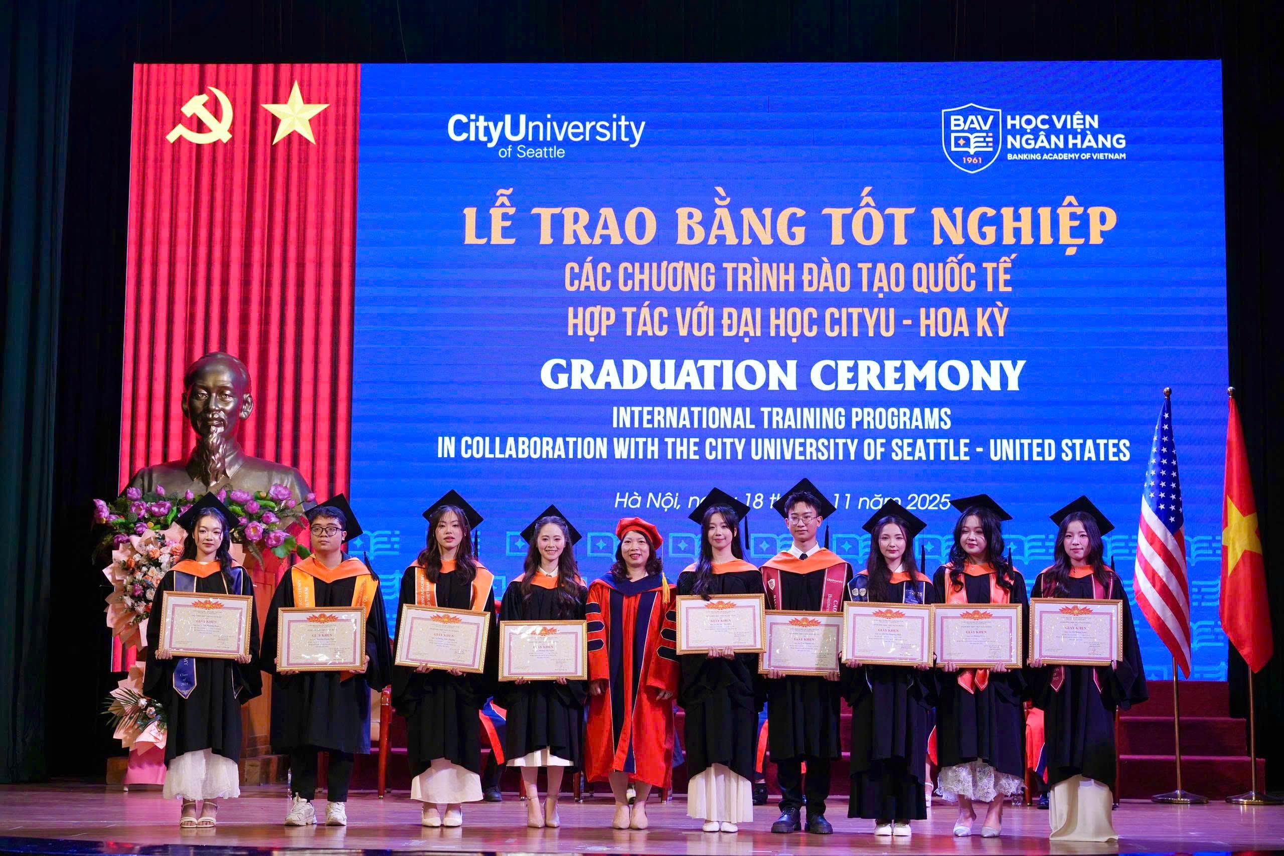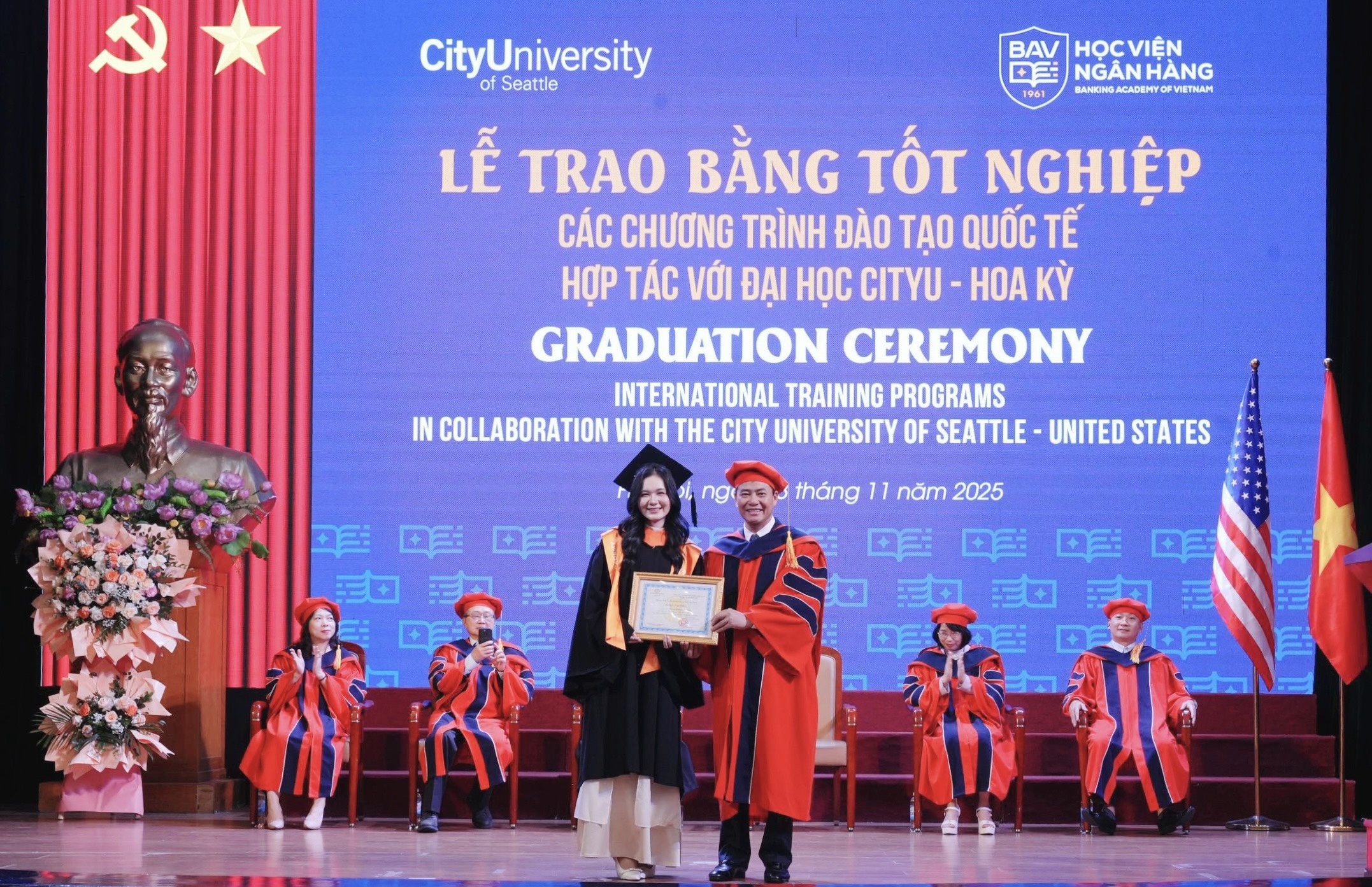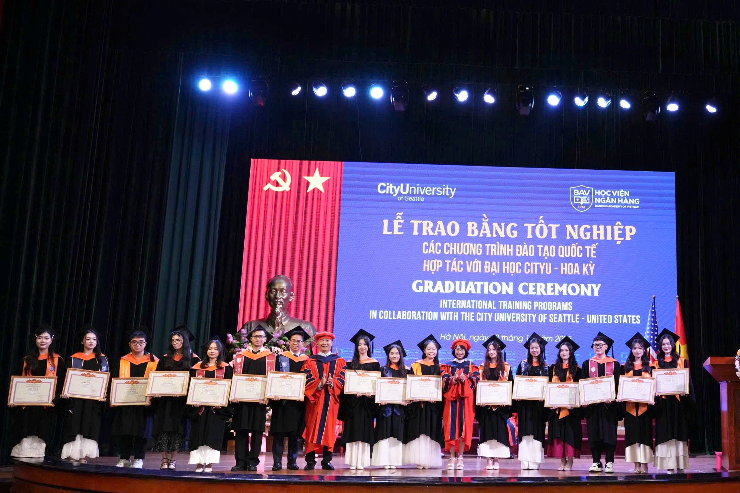 Cùng gửi lời chúc mừng đến các tân thạc sĩ, tân cử nhân, bà Susan Elies-Wash, Hiệu trưởng Trường Đại học CityU Seattle khẳng định, tấm bằng cử nhân mà các bạn được nhận từ Đại học CityU Seattle và Học viện Ngân hàng không chỉ là minh chứng rằng các bạn đã nỗ lực gấp đôi trong học tập của mình mà còn minh chứng rằng các bạn đã mở rộng nhiều hơn ở tầm nhìn của bản thân. Đồng thời, các bạn sinh viên có khả năng tư duy đa chiều, sự linh hoạt trong tiếp cận tri thức và làm việc trong bối cảnh đa ngôn ngữ, đa văn hóa của sinh viên. Với việc tốt nghiệp chương trình, các tân cử nhân chính thức gia nhập mạng lưới gần 20.000 cựu sinh viên CityU đang làm việc tại nhiều quốc gia và vùng lãnh thổ trên thế giới, qua đó mở rộng cơ hội kết nối nghề nghiệp và hợp tác chuyên môn trong tương lai.