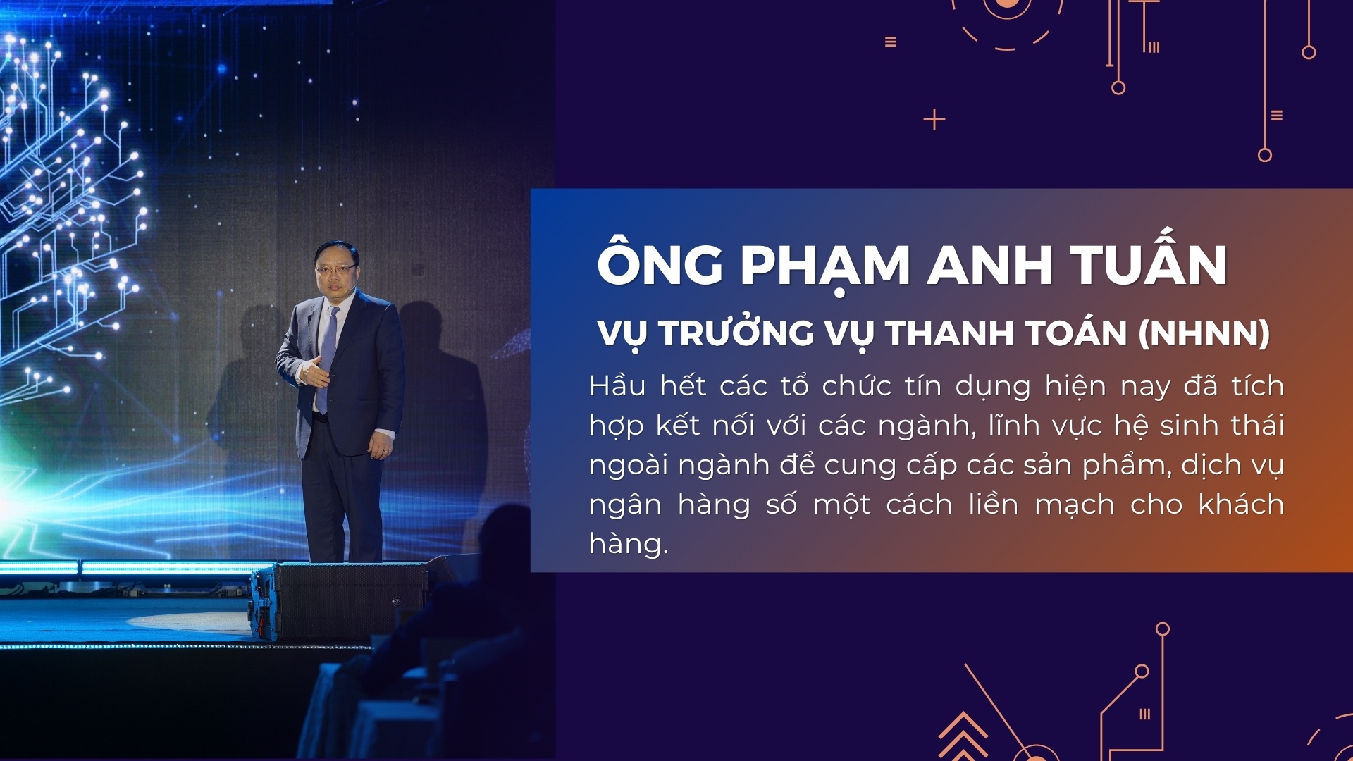 "Nhờ vậy, hầu hết các tổ chức tín dụng hiện nay đã tích hợp kết nối với các ngành, lĩnh vực hệ sinh thái ngoài ngành để cung cấp các sản phẩm, dịch vụ ngân hàng số một cách liền mạch cho khách hàng", Vụ trưởng Vụ Thanh toán vui mừng cho biết.