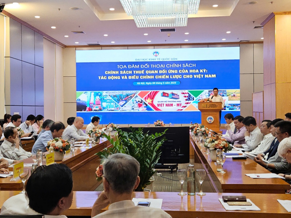 Phát biểu tại Tọa đàm, GS.TS. Nguyễn Thành Hiếu, Phó Giám đốc Đại học Kinh tế Quốc dân cho hay, các biện pháp áp thuế đối ứng được Hoa Kỳ (Mỹ) mới đưa ra không chỉ ảnh hưởng đến các đối tác lớn như Trung Quốc, EU, mà còn tác động dây chuyền đến nhiều quốc gia khác có liên kết chuỗi cung ứng toàn cầu, trong đó có Việt Nam.