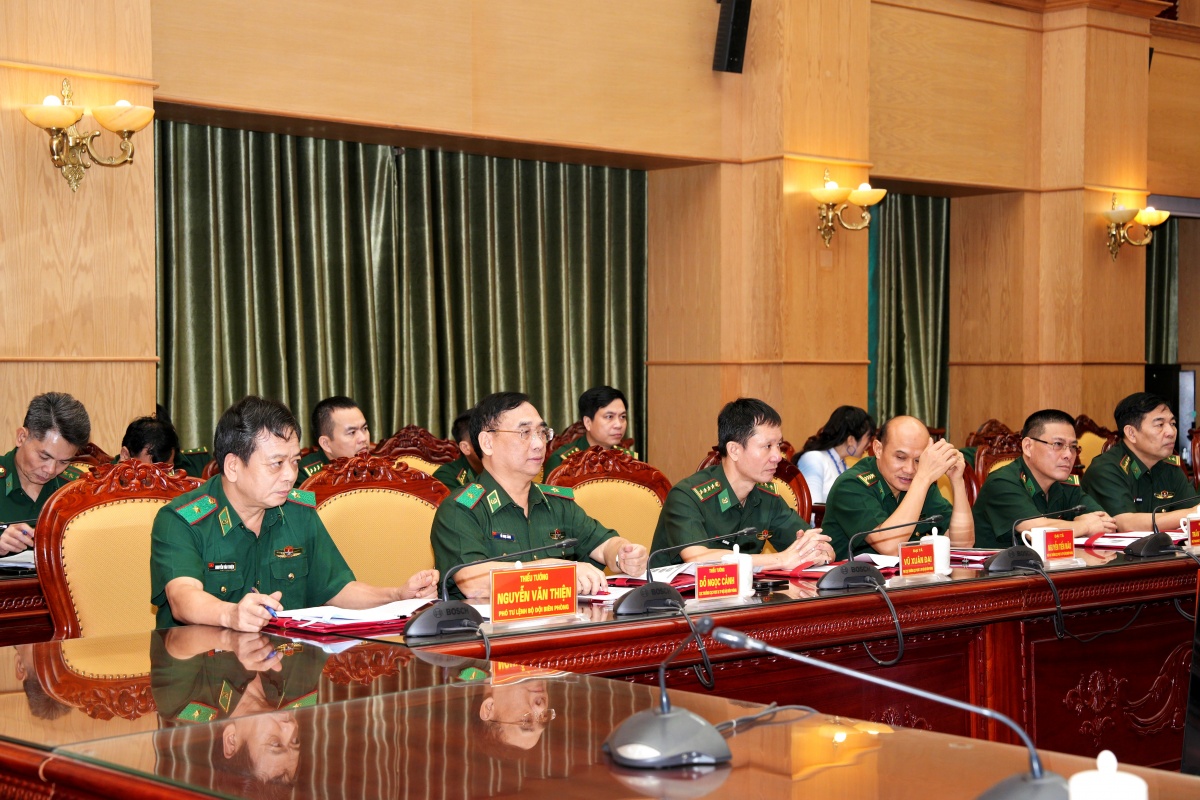 | Phó Thống đốc NHNN Phạm Tiến Dũng và Thiếu tướng Nguyễn Văn Thiện, Phó Tư lệnh Bộ đội Biên phòng trao đổi thông tin bên lề Hội nghị |