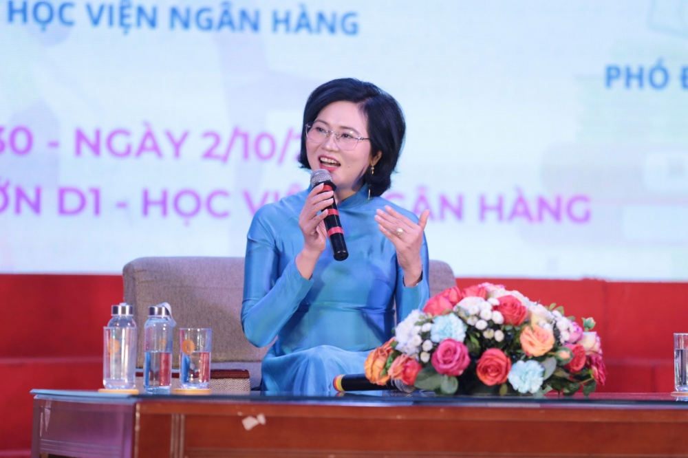 | Bà Lê Thị Thúy Sen, Vụ trưởng Vụ Truyền thông NHNN chia sẻ tại Tọa đàm |