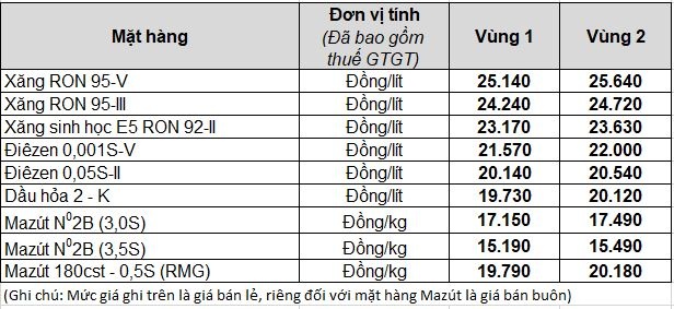 Tại kỳ điều hành hôm nay, liên Bộ tiếp tục không chi sử dụng Quỹ bình ổn giá đối với mặt hàng xăng, dầu diesel và dầu hỏa, đồng thời chi Quỹ bình ổn giá đối với mặt hàng dầu mazut ở mức 300 đồng/kg.