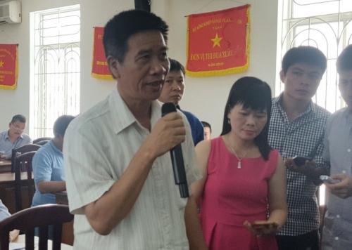 | Ông Nguyễn Hữu Hùng, phó tổng giám đốc Công ty Nam Triệu cam kết sẽ thay máy mới cho dân - Ảnh: Duy Thanh |