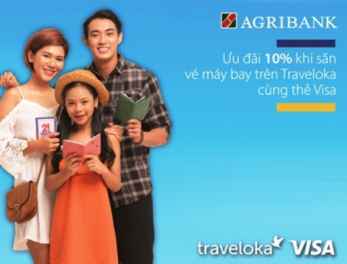 Từ nay đến hết ngày 31/7/2017, khách hàng đặt vé máy bay với thẻ tín dụng Agribank Visa trên ứng dụng hoặc trang web của Traveloka sẽ nhận được ưu đãi chiết khấu 10% (tối đa 155.000 đồng).