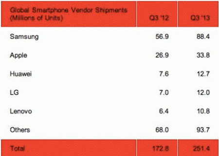 Theo nghiên cứu mới nhất của WSS - Wireless Smartphone Strategies, tốc độ tăng trưởng sản xuất điện thoại Smartphone toàn cầu hàng năm đạt 45% và đạt con số 251 triệu chiếc trong quý 3/2013. Samsung nắm giữ con số kỷ lục 35% thị phần điện thoại Smartphone toàn cầu.