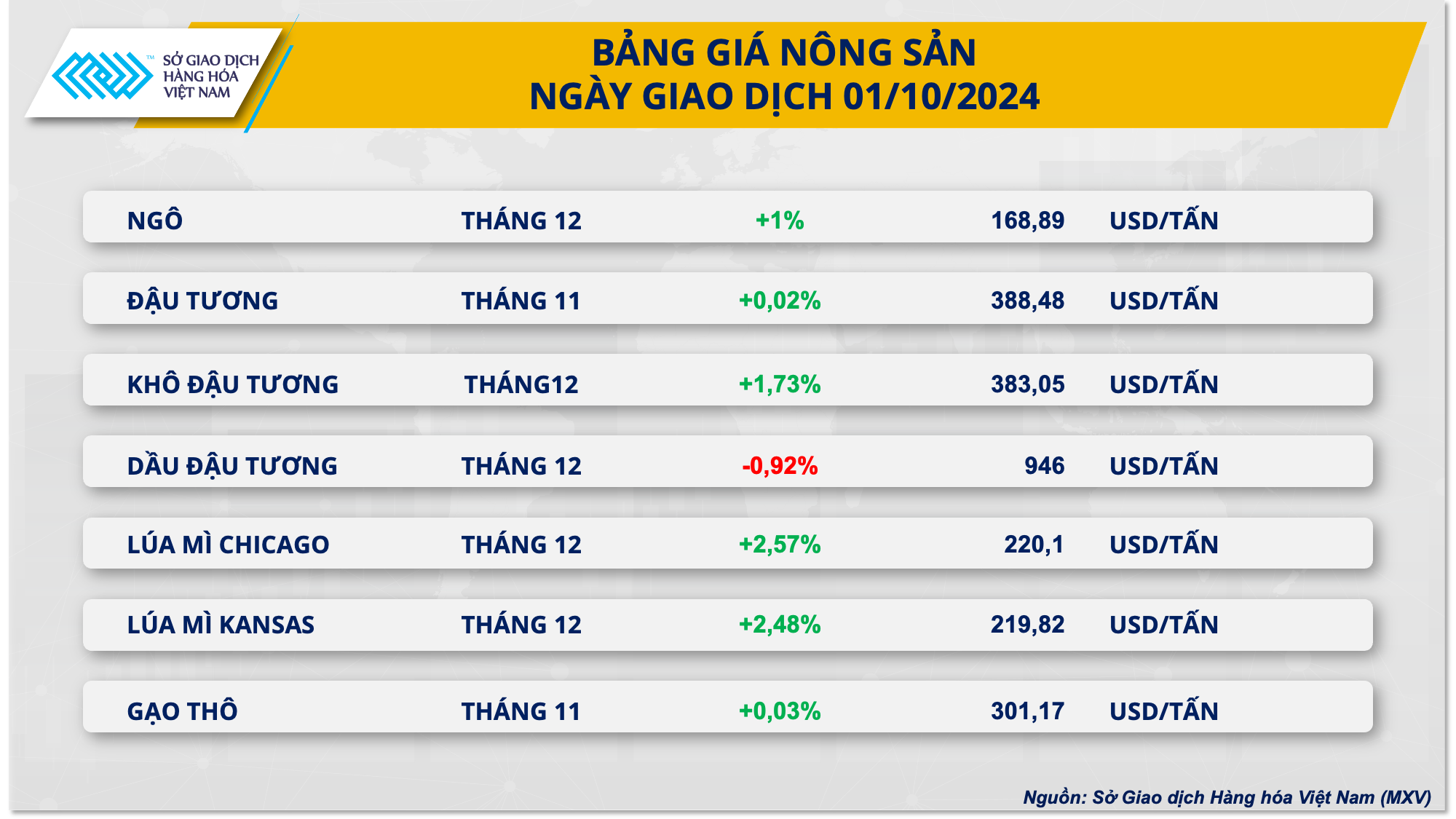 Theo MXV, kết thúc phiên giao dịch hôm qua, giá nhiều mặt hàng nông sản đồng loạt đi lên. Trong đó, giá ngô hợp đồng kỳ hạn tháng 12 đã tăng 1% vào hôm qua đưa mức giá mặt hàng này lên mức 168,89 USD/tấn, nối dài đà tăng sang phiên thứ ba liên tiếp tăng giá. Đà tăng này khả năng sẽ còn kéo dài khi thị trường đón nhận những thông tin tích cực về nhu cầu cũng như lo ngại về nguồn cung.