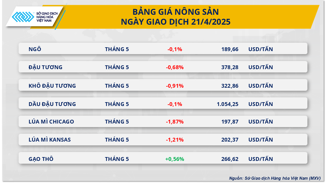 Tương tự đậu tương, hai mặt hàng thành phẩm là khô đậu và dầu đậu đều đồng loại suy yếu. Giá dầu đậu tương giảm nhẹ không đáng kể 0,1%, cho thấy phe bán đã quay trở lại thị trường sau 5 phiên tăng liên tiếp. Sự thiếu rõ ràng về chính sách hỗ trợ nhiên liệu sinh học tại Mỹ tiếp tục làm suy yếu kỳ vọng tiêu thụ dầu đậu tương của nước này, khiến giá chịu áp lực.