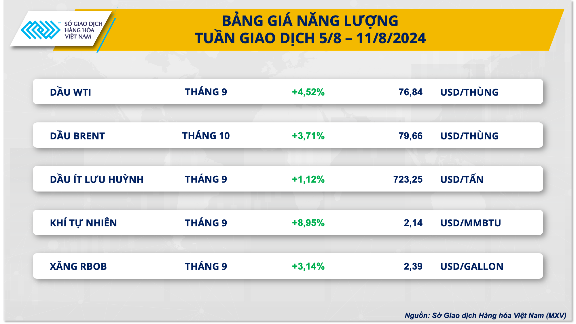 Về yếu tố vĩ mô, số người Mỹ nộp đơn xin trợ cấp thất nghiệp lần đầu đã giảm nhiều hơn dự kiến vào tuần trước, làm dịu đi những lo ngại áp lực trên thị trường lao động nước này. Theo Bộ Lao động Mỹ, các đơn xin trợ cấp thất nghiệp lần đầu đã giảm 17.000 xuống còn 233.000 đơn trong tuần kết thúc vào ngày 3/8, ghi nhận mức giảm lớn nhất trong khoảng 11 tháng. Số liệu này tích cực hơn so với dự báo của các nhà kinh tế. Nỗi lo suy thoái được giảm bớt cũng phần nào hỗ trợ tâm lý cho các nhà đầu tư và thúc đẩy đà phục hồi của giá dầu.