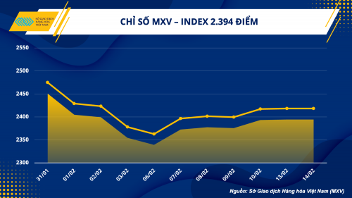 Kết thúc phiên giao dịch ngày 14/2, sắc xanh áp đảo trên bảng giá các mặt hàng nhóm nguyên liệu công nghiệp. Hai mặt hàng cà phê tiếp tục khởi sắc nhờ hỗ trợ của chỉ số đô la Mỹ.