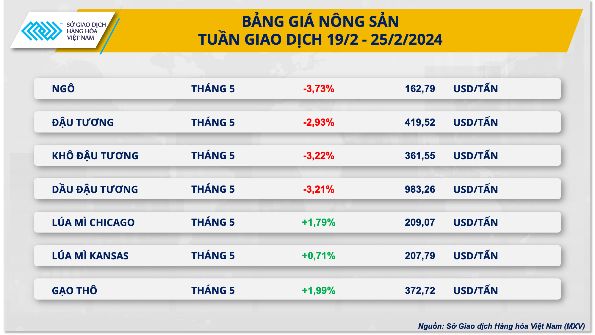 Trong bối cảnh nguồn cung Nam Mỹ nới lỏng hơn, các số liệu xuất khẩu của Mỹ lại khiến thị trường lo ngại. Trong tuần kết thúc ngày 15/2, Bộ Nông nghiệp Mỹ (USDA) cho biết nước này bán được khoảng 820.420 tấn ngô, giảm 37,2% so với tuần trước đó. Doanh số bán hàng thấp cũng đã góp phần thúc đẩy lực bán đối với ngô.