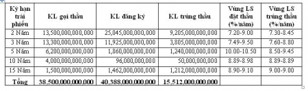 Kho bạc Nhà nước huy động được 9.722 tỷ đồng, Ngân hàng Phát triển Việt Nam huy động được 3.390 tỷ đồng, Kho bạc Nhà nước Hà Nội (UBNN thành phố Hà Nội) huy động được 2.400 tỷ đồng.